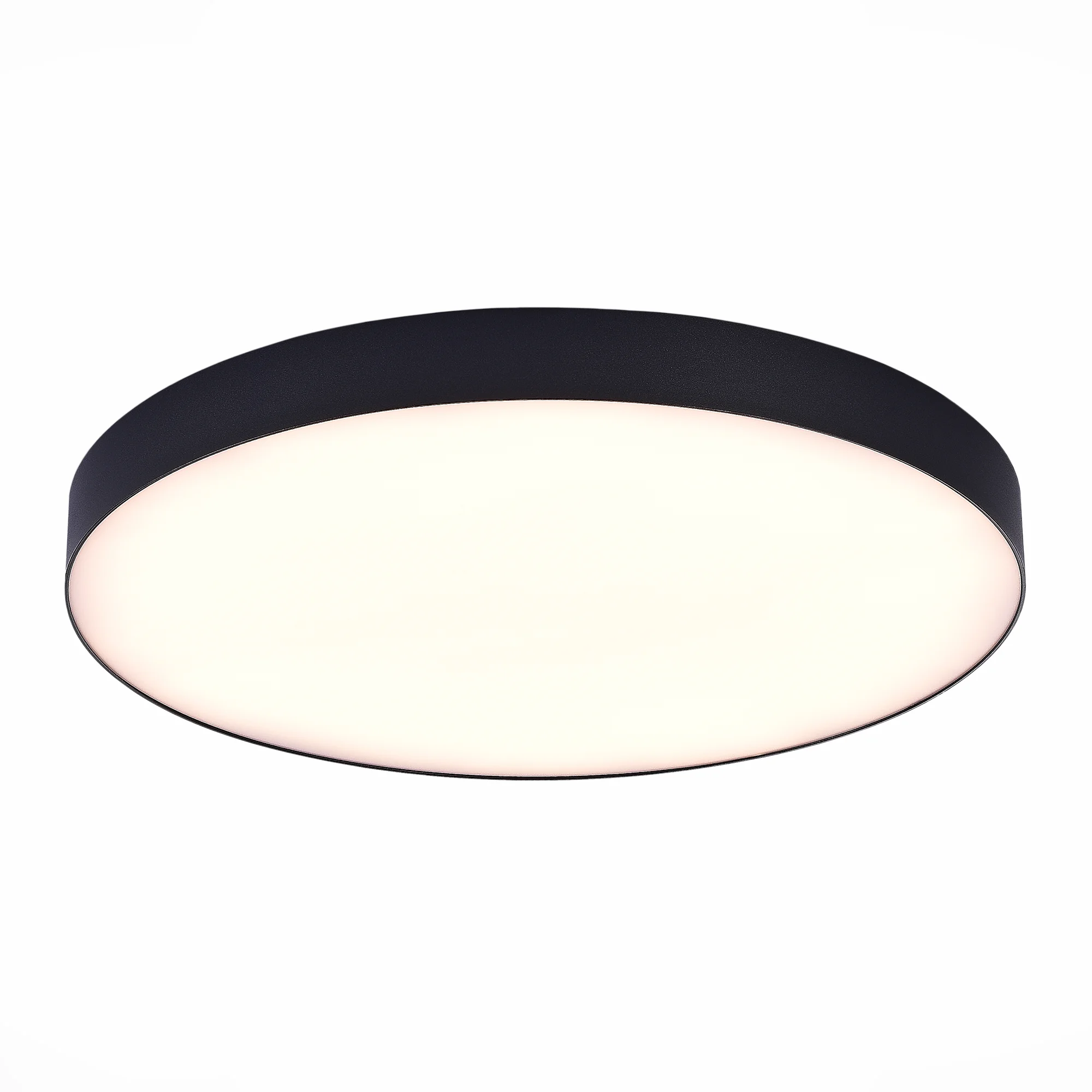 Накладной интерьерный светильник. Мощность 94 Вт, св. поток 7620 лм, 80 лм/Вт, дневной 4000 K, CRI>80, угол 100°, напряжение питания 230 В. Черный круглый корпус из алюминия, степень защиты IP20. Призматический акриловый рассеиватель. Размер: диаметр 800 мм, высота 100 мм. Монтаж накладной. Драйвер 28-42 В, 1200 мА (2 шт.), пульсация <2%.