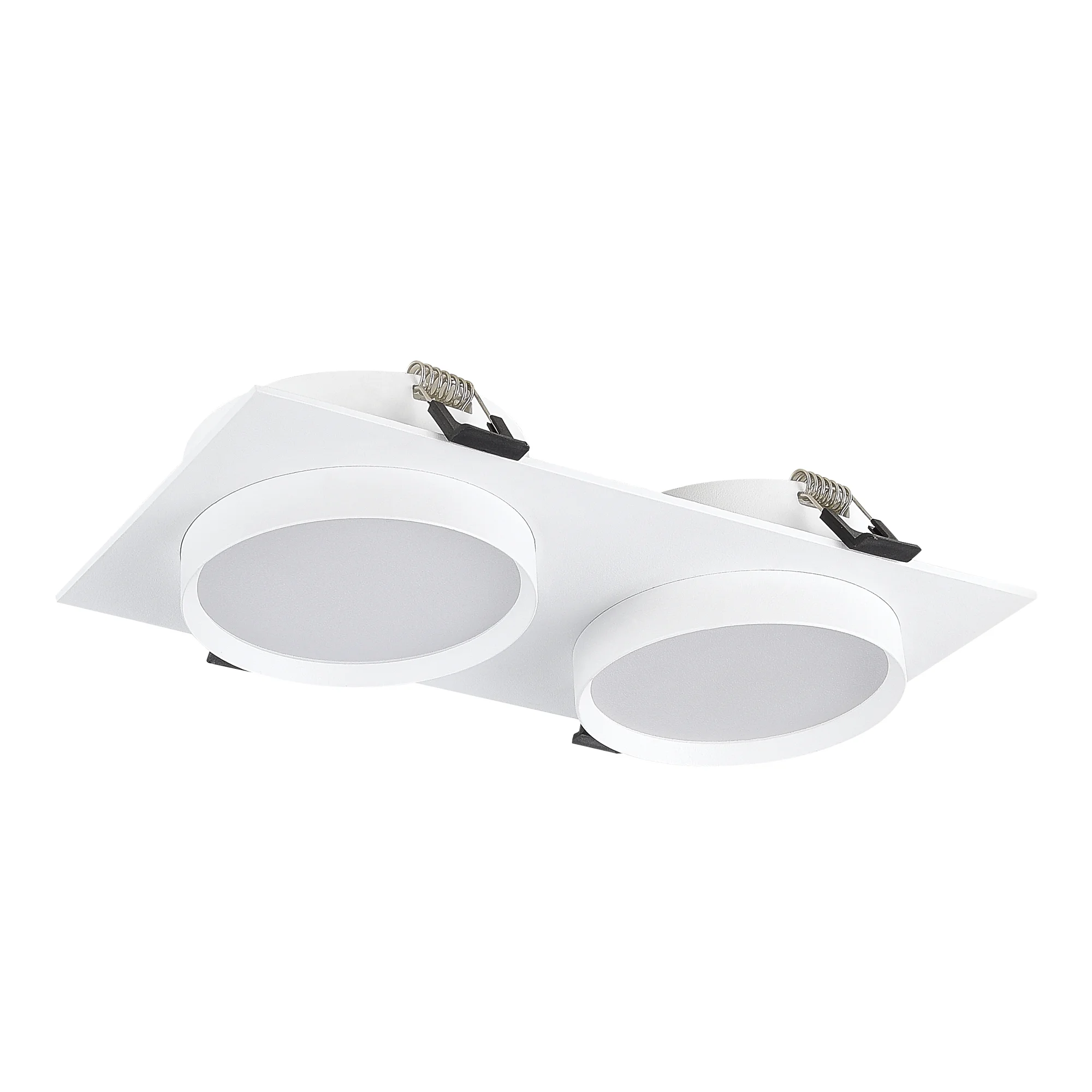 Встраиваемый светильники с лампой с цоколем GU10 и поворотным механизмом. Представлен в черном и белом цвете, в круглом и прямоугольном корпусе.