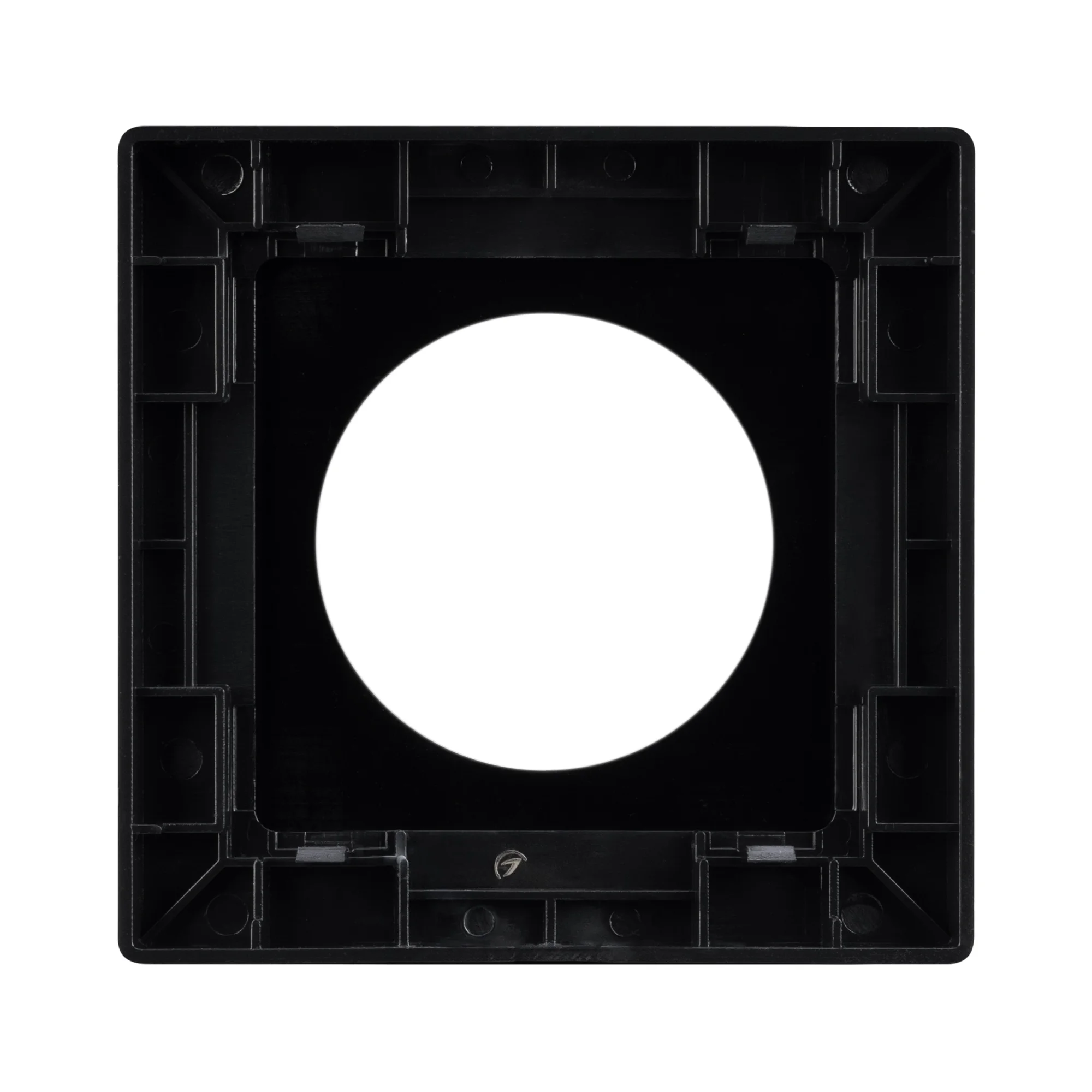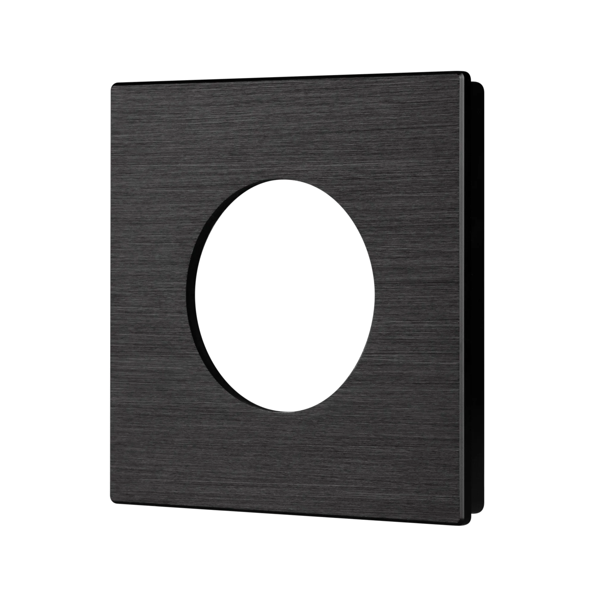 Рамка алюминиевая на 1 пост, под встраиваемый механизм. Вырез под функциональную часть — круг. Цвет — черный. Ориентации монтажа — горизонтальная и вертикальная. Габаритные размеры: длина 82 мм, ширина 82 мм, высота 10 мм. Гарантийный срок 12 мес. Рамка совместима только с механизмами арт. 043739/043740/043741