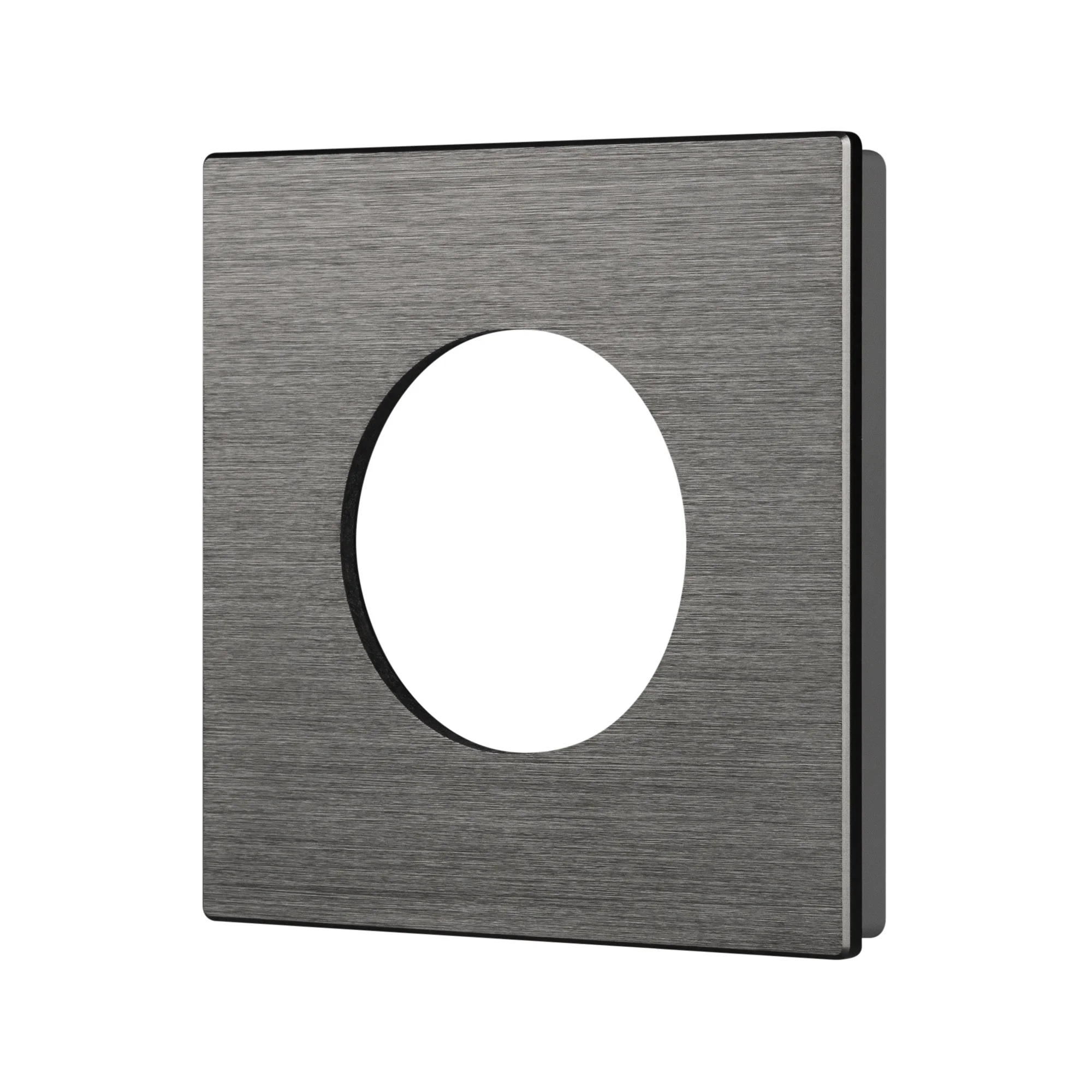 Рамка алюминиевая на 1 пост, под встраиваемый механизм. Вырез под функциональную часть — круг. Цвет — серый. Ориентации монтажа — горизонтальная и вертикальная. Габаритные размеры: длина 82 мм, ширина 82 мм, высота 10 мм. Гарантийный срок 12 мес. Рамка совместима только с механизмами арт. 043739/043740/043741