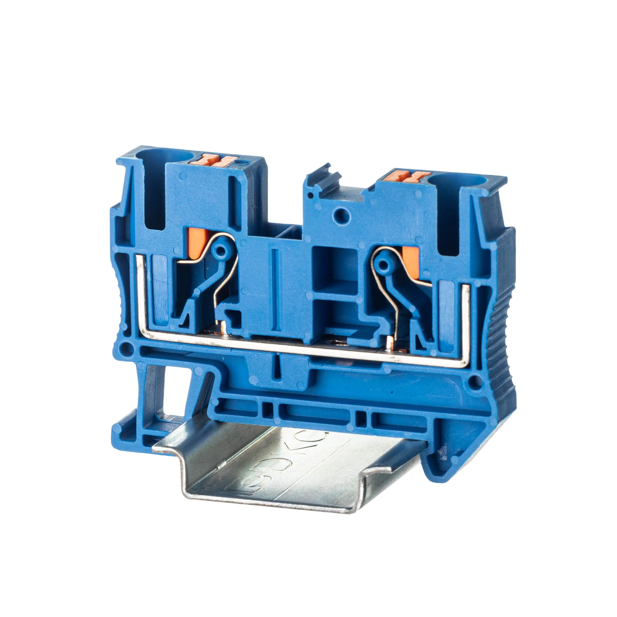 Проходная клемма с зажимом Push-in предназначена для соединения двух проводников, а за счет кнопки-толкателя обеспечивается защита от ошибок при монтаже и случайного прикосновения. Монтаж осуществляется на DIN-рейку OMEGA. Температура эксплуатации от -40 до +105оС. Корпус выполнен из ПА 6.6 с классом горючести V0 UL-94. Синий цвет, 2 точки подключения, 6 мм². 2 канала для вставных […]