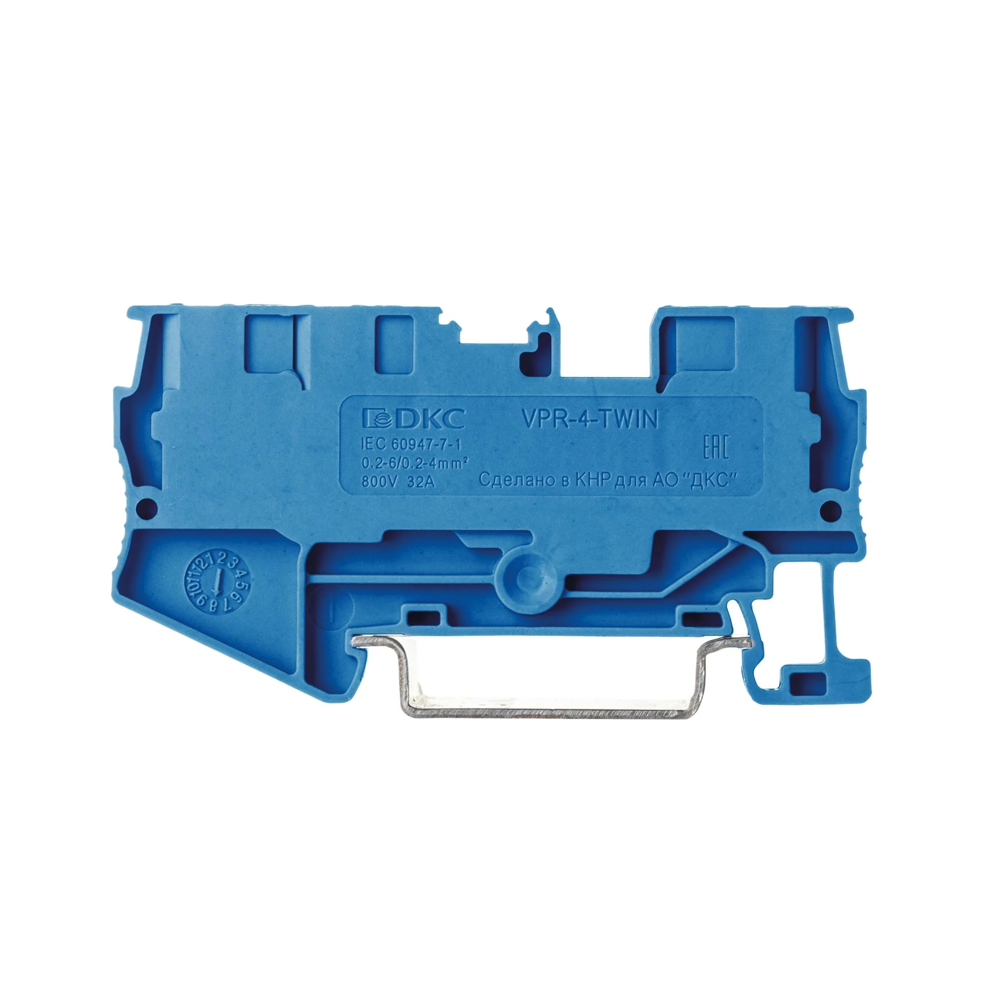 Клемма двухуровневая с Push-in зажимом предназначена для соединения четырех проводников, а за счет кнопки-толкателя обеспечивается защита от ошибок при монтаже и случайного прикосновения. Уровни соединены перемычкой. Монтаж осуществляется на DIN-рейку OMEGA. Температура эксплуатации от -40 до +105°C. Корпус выполнен из ПА 6.6 с классом горючести V0 UL-94. Синий цвет, 4 точки подключения, 4 мм². Вставные […]