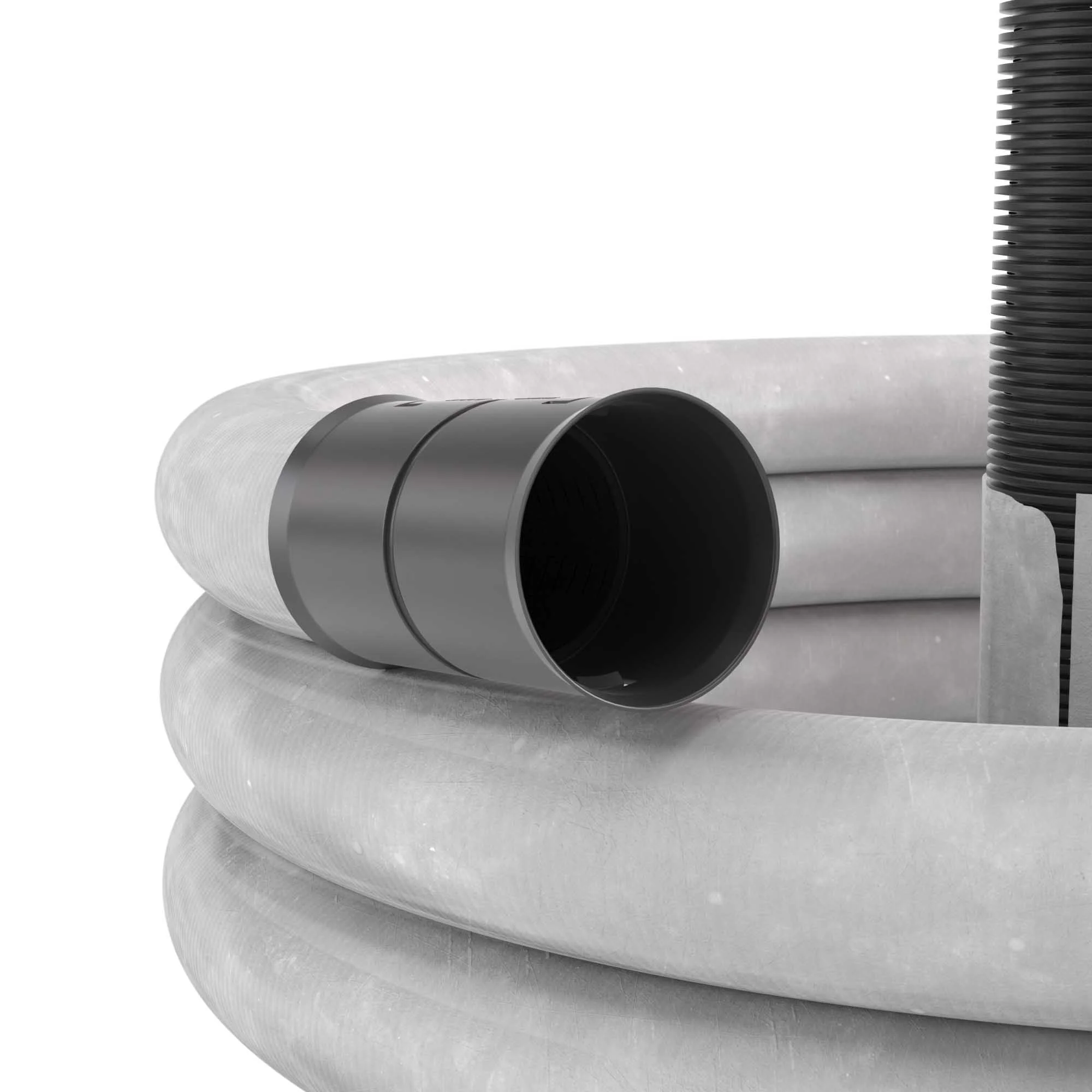 DKC Двустенная труба ПНД гибкая дренажная д.110мм с геофильтром, SN6, перфорация 360 град., в бухте 50м, цвет черный
