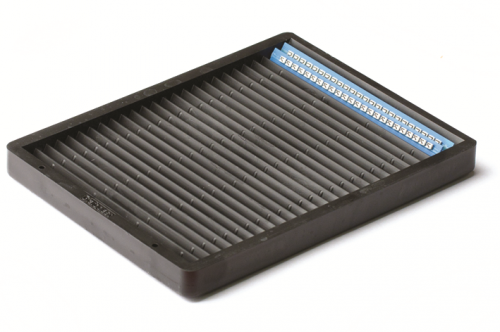 Для быстрой маркировки и распознавания кабельных систем, проложенных в разных лотках, применяются маркировочные таблички. Табличка крепится к лотку, а этикетка с необходимой информацией помещается внутрь таблички. Материал маркировочной таблички — полистирол.