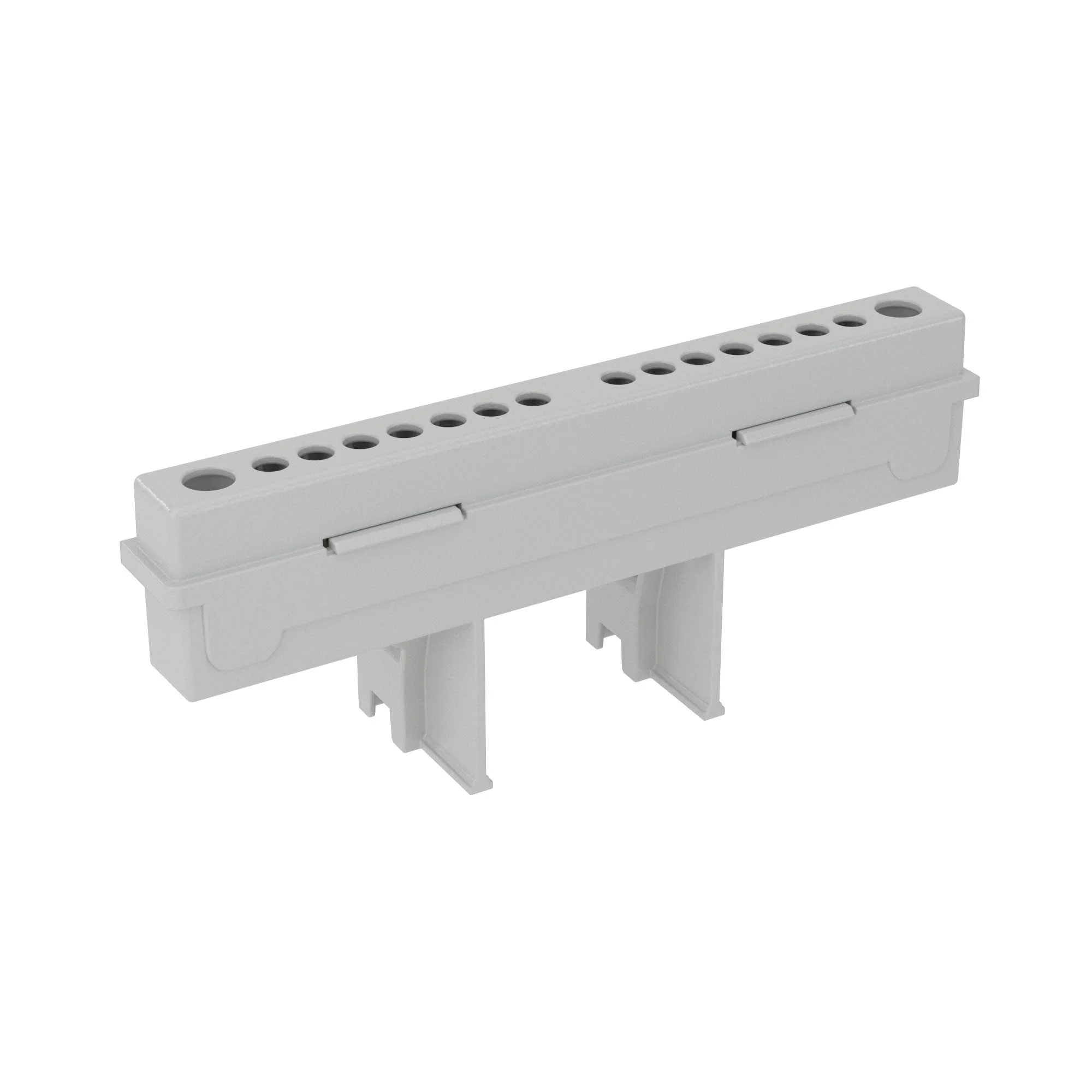 Однополюсная клеммная колодка предназначена для соединения проводников с помощью винтовой фиксации. Прочные винты из оцинкованной стали, непозволящие сорвать резьбу. Специальная форма изоляционной части предотвращает выпадание полностью выкрученного метиза. Возможность крепления колодки как на DIN-рейку с помощью суппорта 159SM, так и к поверхности за счет крепежной петли. Максимальное сечение проводника – 16 мм². Количество отверстий в […]