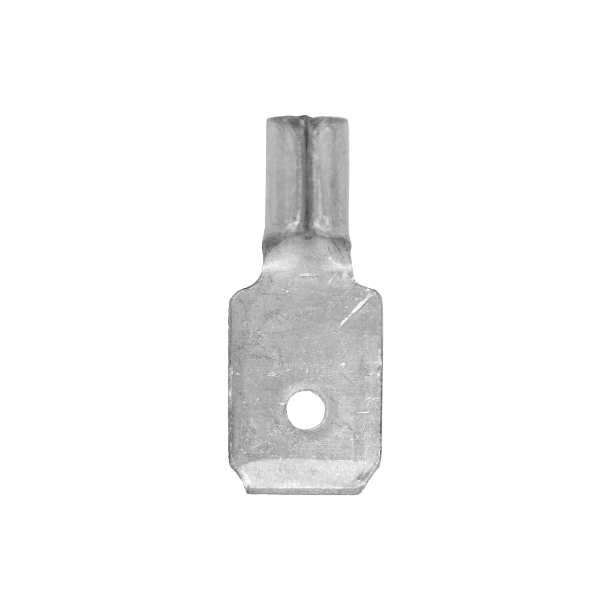 Плоские наконечники быстрого соединения (вилка «папа») предназначены для оконцевания кабеля и проводов с медными жилами сечением от 1.5 до 2,5 мм² в электрических цепях переменного и постоянного тока, напряжение до 600 В. Материал контактной части – электротехническая медь, материал изоляции — ПВХ. Луженое покрытие обеспечивает защиту от коррозии. Фланец изолирован. Номинальный размер соединителя 6,3×0,8 мм². […]