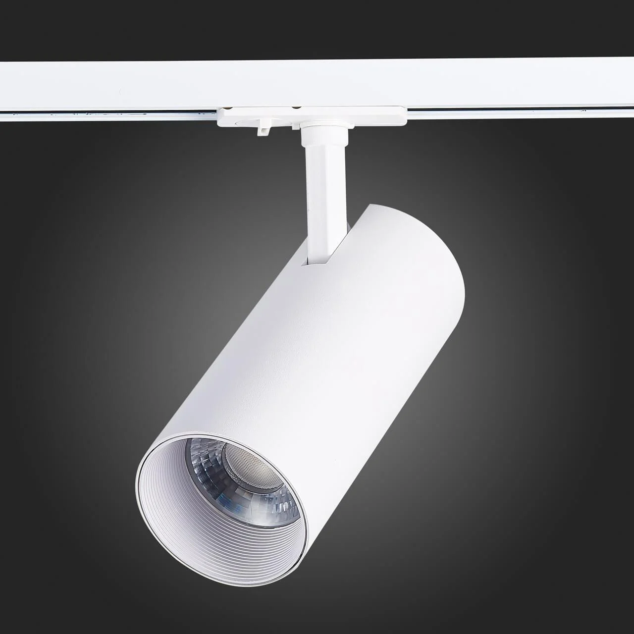 Светильники с LED цоколем для шинопровода с креплением, утопленным во внутрь трека. Цилиндрические плафоны укороченной формы. Представлен с источником света различной мощности и в двух цветовых температурах.