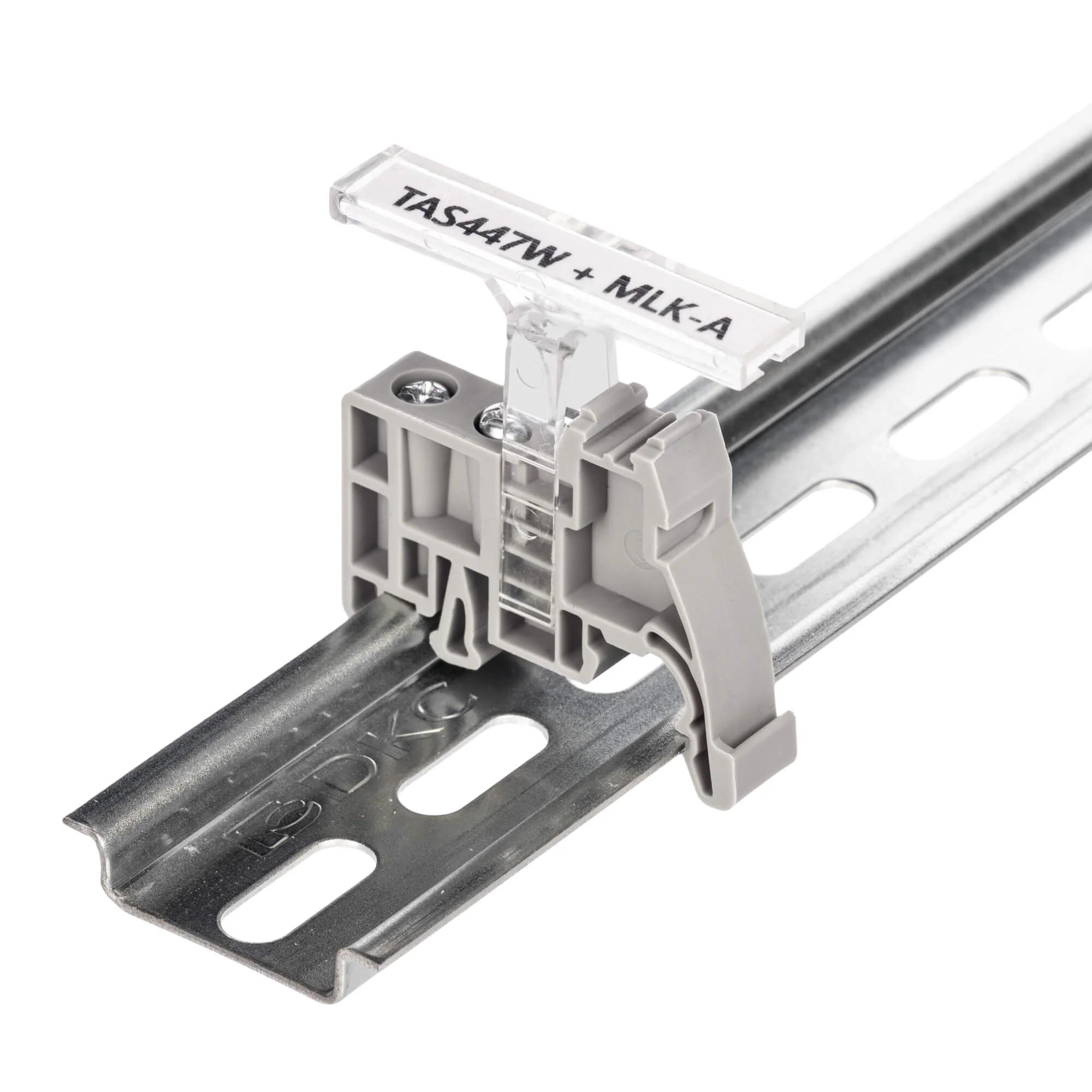 Табличка маркировочная полужесткая из ПВХ предназначена для установки в держатель, маркировки торцевого фиксатора UK-E, печати на принтере MarkTC и MarkTC Plus. Совместимый адаптер – PLT01. Класс горючести по UL94 – V0. Температура эксплуатации: от −30 до +60 °С. Размер: 44х7 мм, 28 тегов на пластине, 10 пластин в упаковке, цвет – белый.