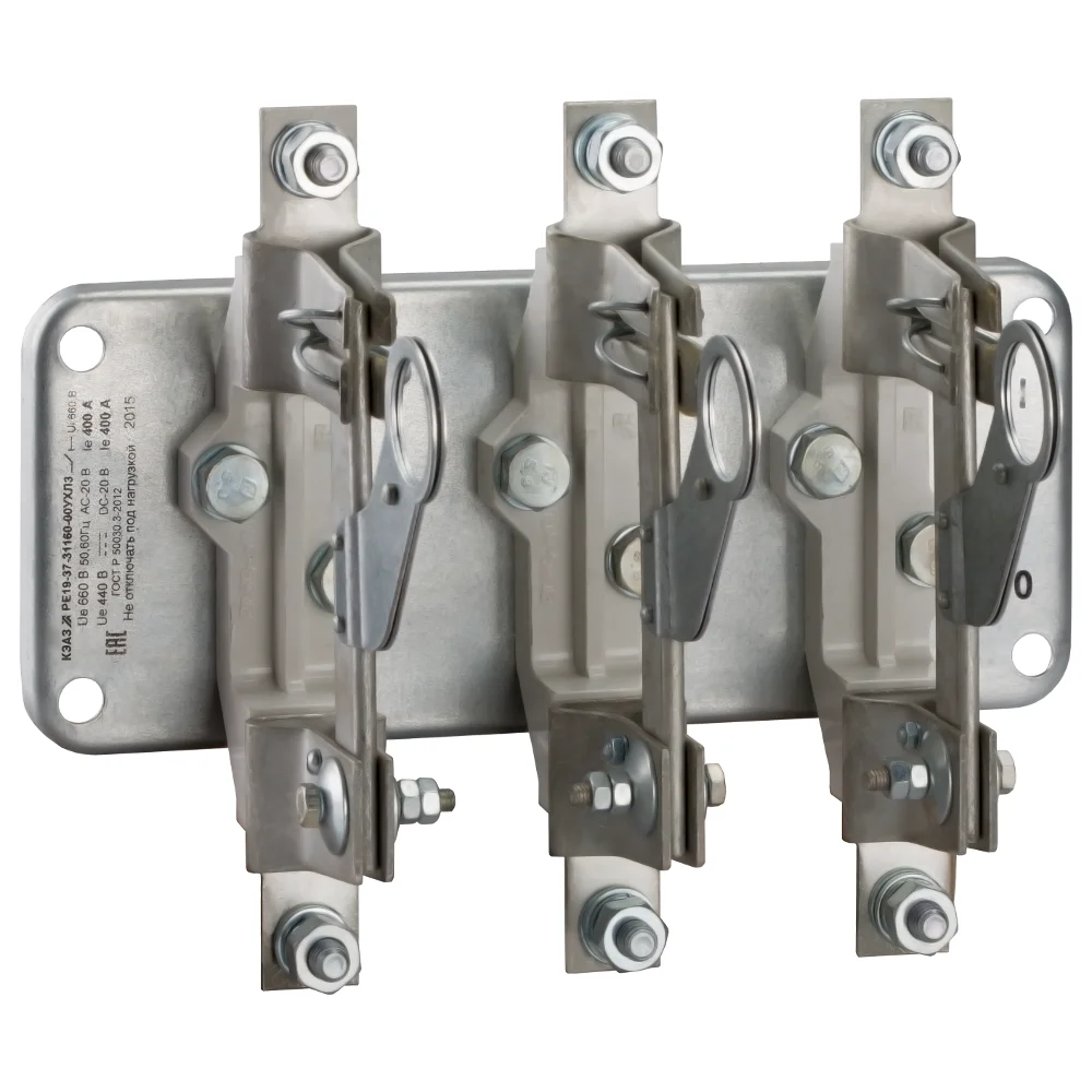 Выключатель-разъединитель 1 полюсный на номинальный ток 400 А, в котором установлена несъемная рукоятка.