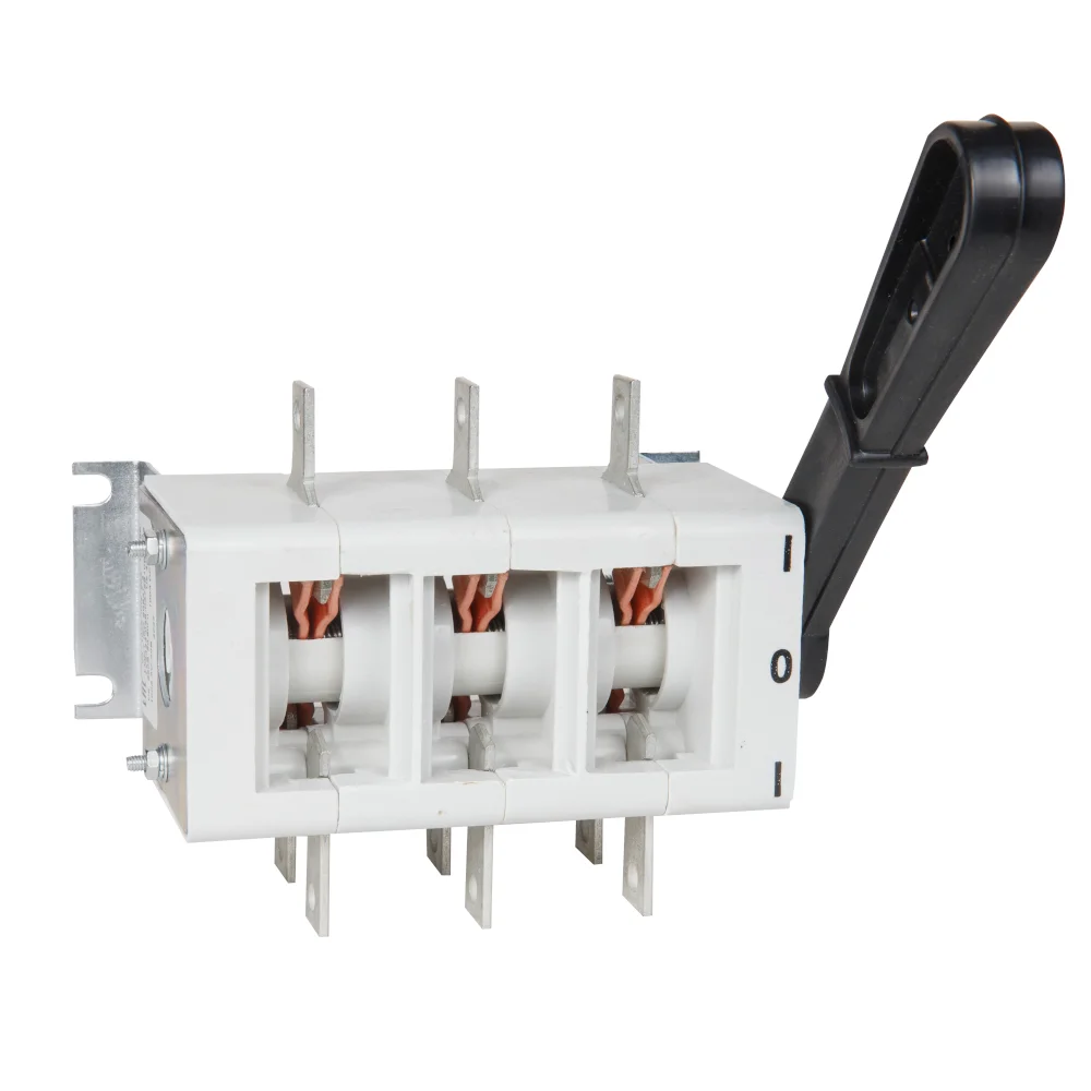 Выключатель-разъединитель 3 полюсный на номинальный ток 630 А, в котором установлена несъемная рукоятка.