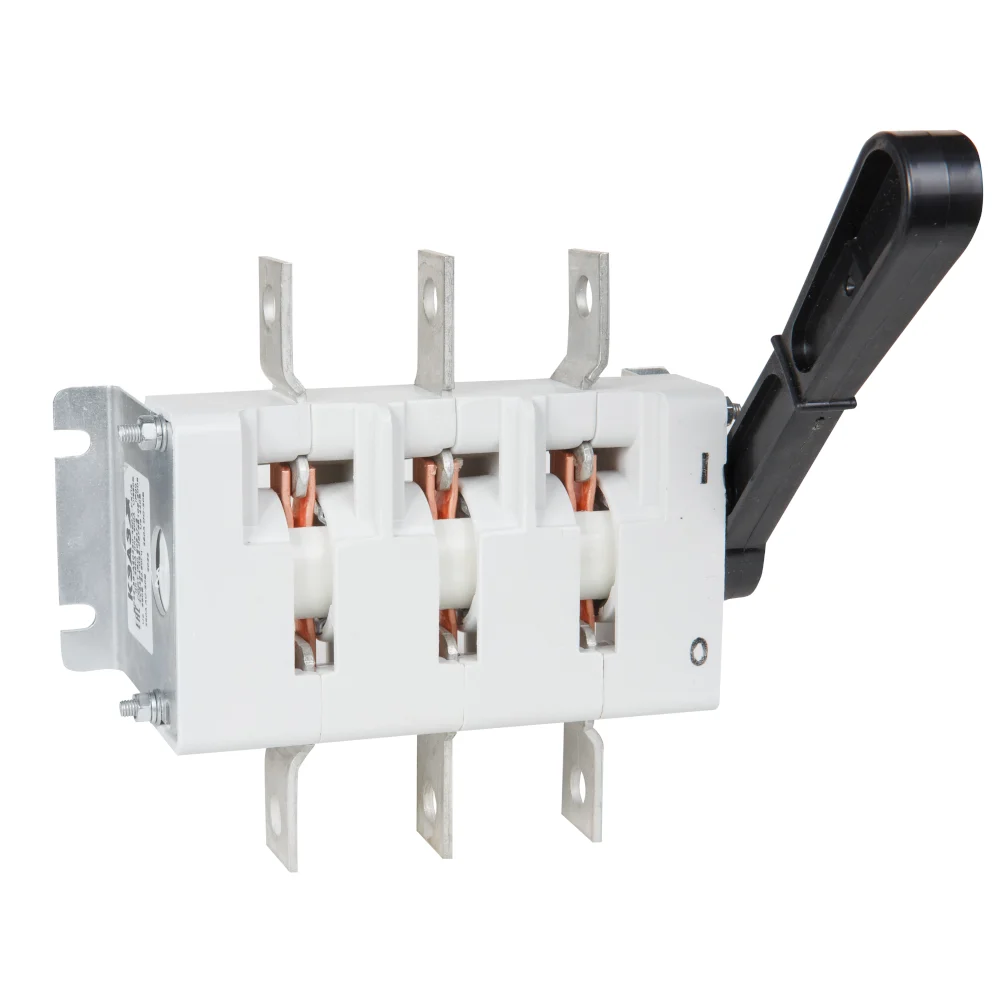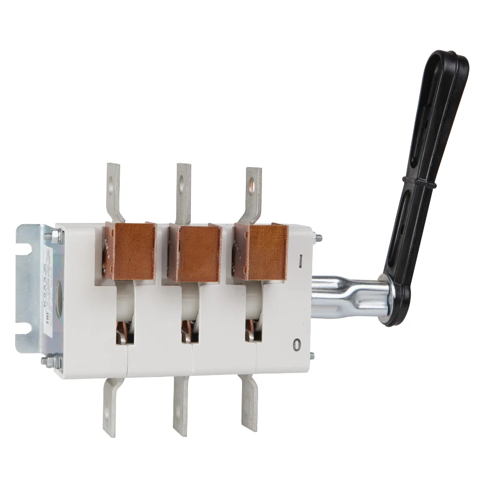 Выключатель-разъединитель 3 полюсный на номинальный ток 630 А, в котором установлена несъемная рукоятка.