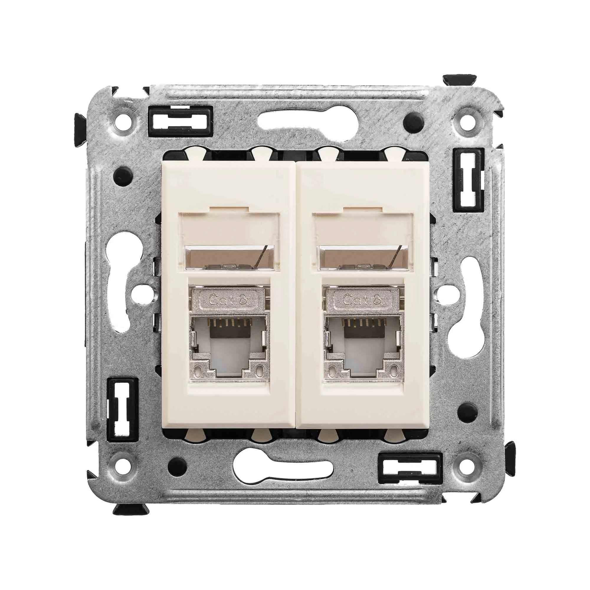 Двойная розетка Systeme Electric (ранее Schneider Electric) BLANCA (скрытой установки, цвет бежевый) с изолирующей пластиной, со входом для компьютера RJ45 категория 5е и для телефона RJ11, предназначена для удобного и быстрого подключения устройств к телефонной сети и сети Интернет. — Позволяет одновременно подключить компьютер и телефон. -Корпус изделия выполнен из ABS-пластика.