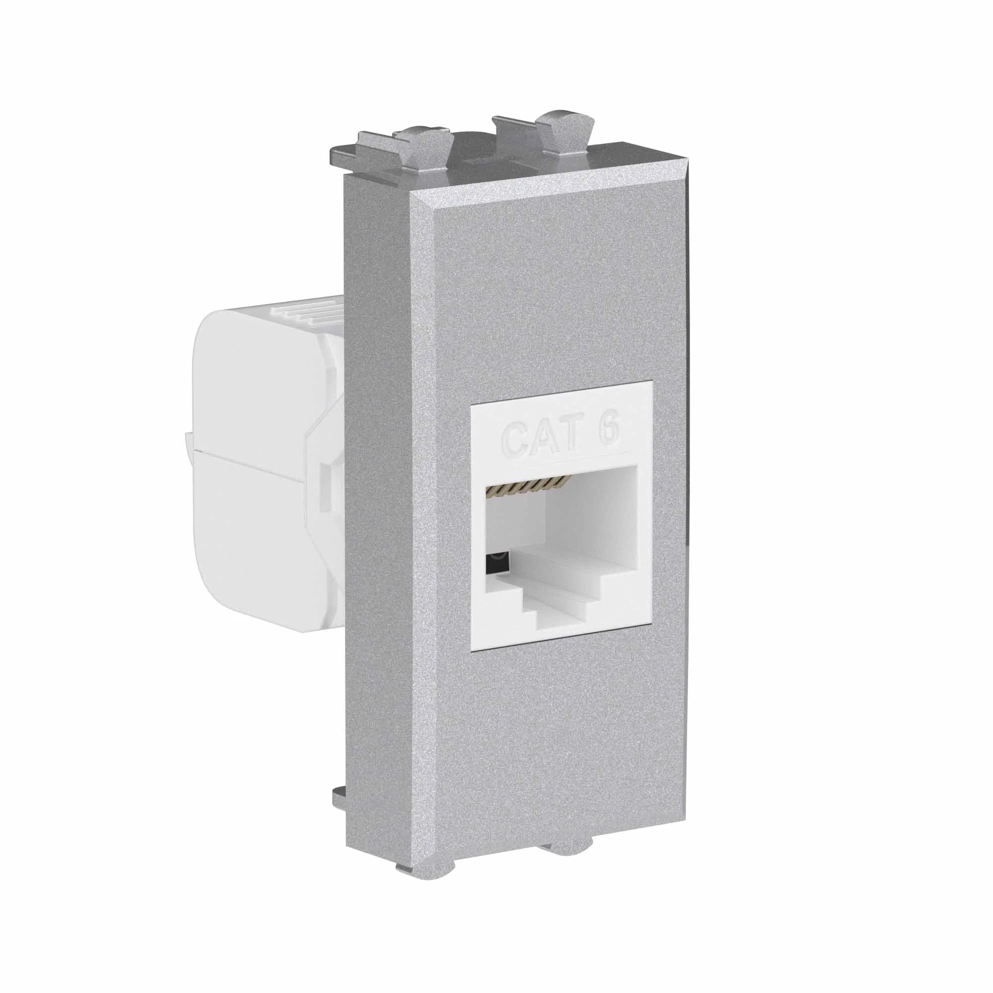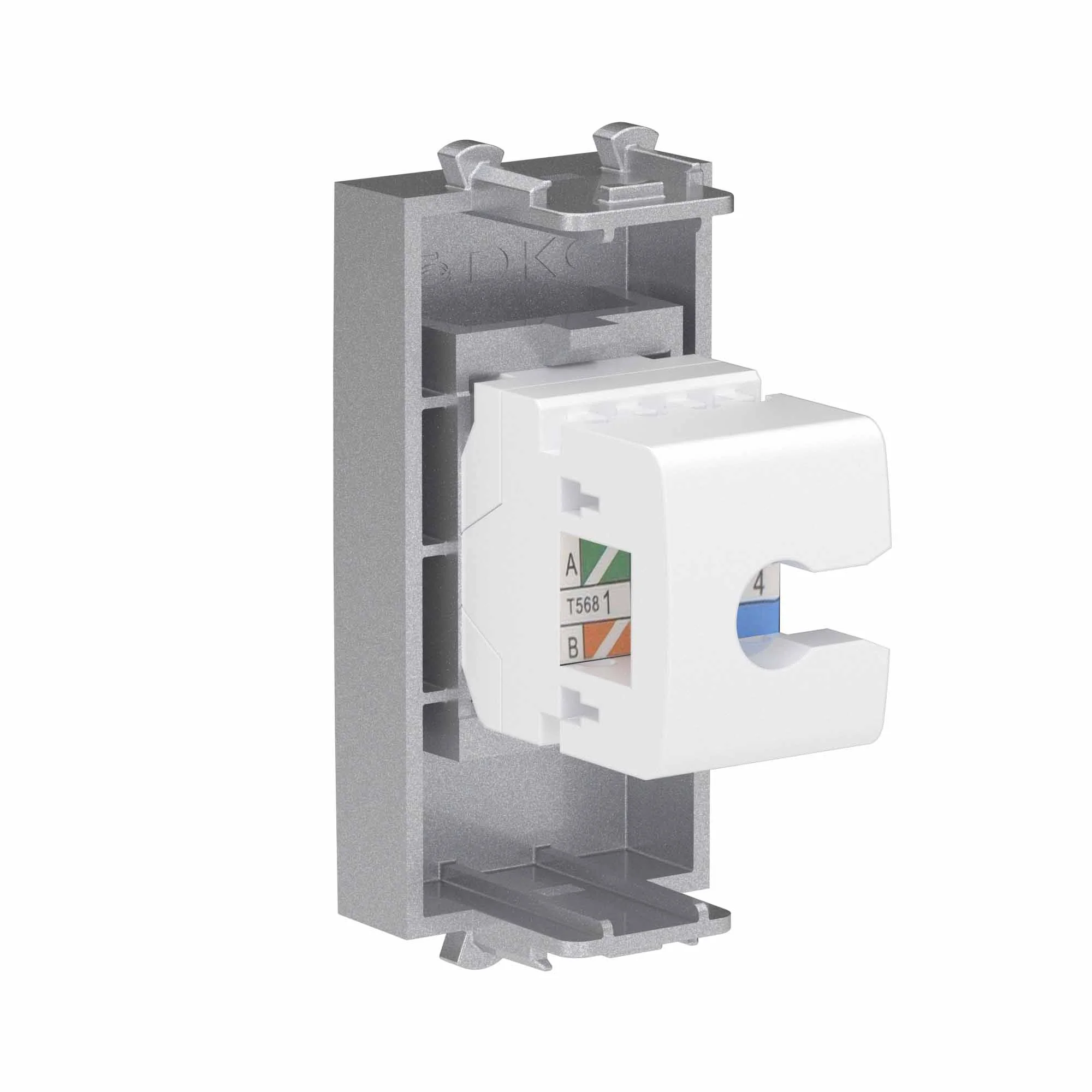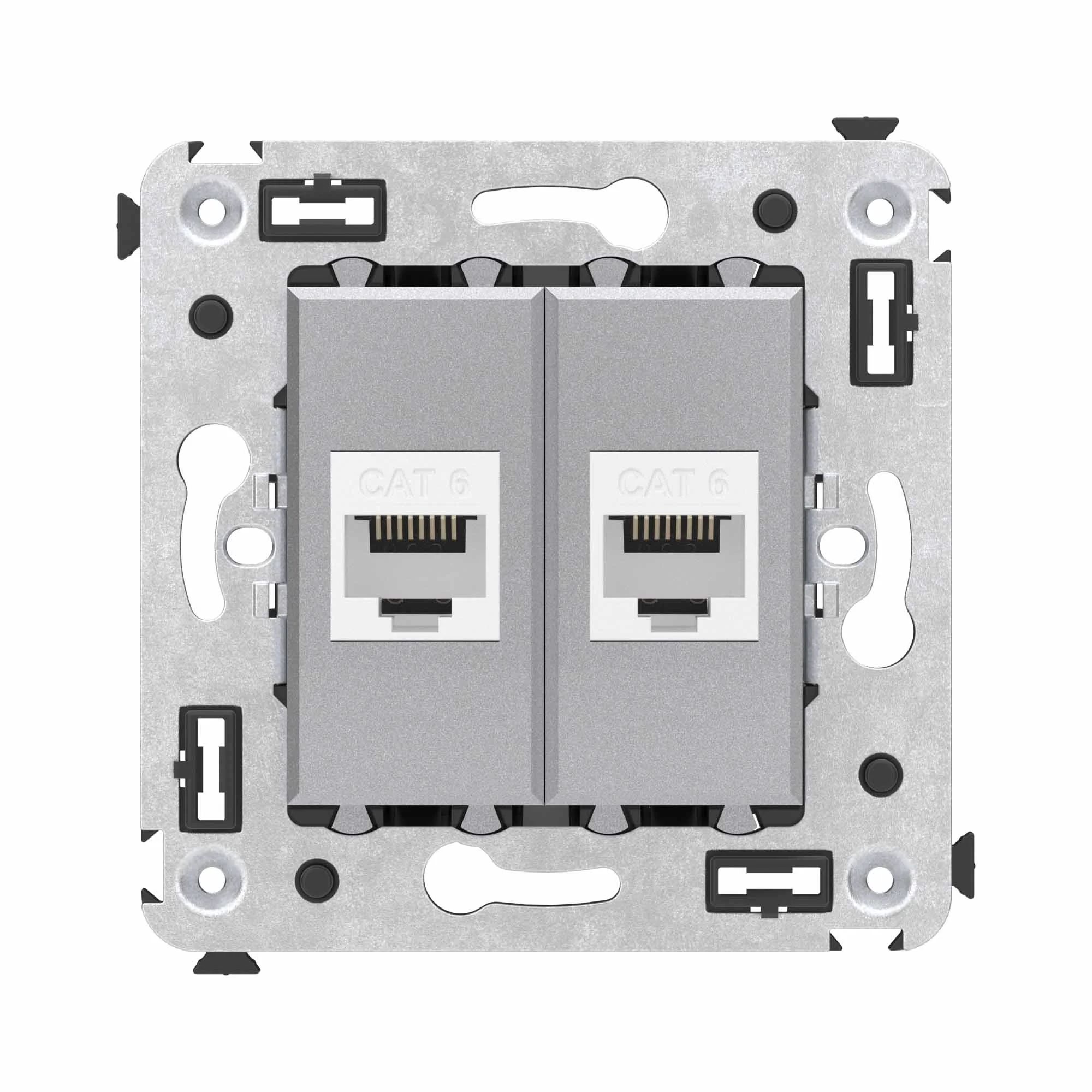 Компьютерная розетка используется для подключения компьютерной техники и соединения с патч-панелью, предназначена для комплектации систем организации рабочих мест (кабель-каналов, лючков, башенок, колонн). Розетка RJ-45 категории 6 может использоваться для организации сетей с частотой до 250 МГц и передавать данные на большие расстояния. Материал розетки – металл, термопласт. Пластиковые детали изделия выполнены в цвете «Закаленная сталь».
