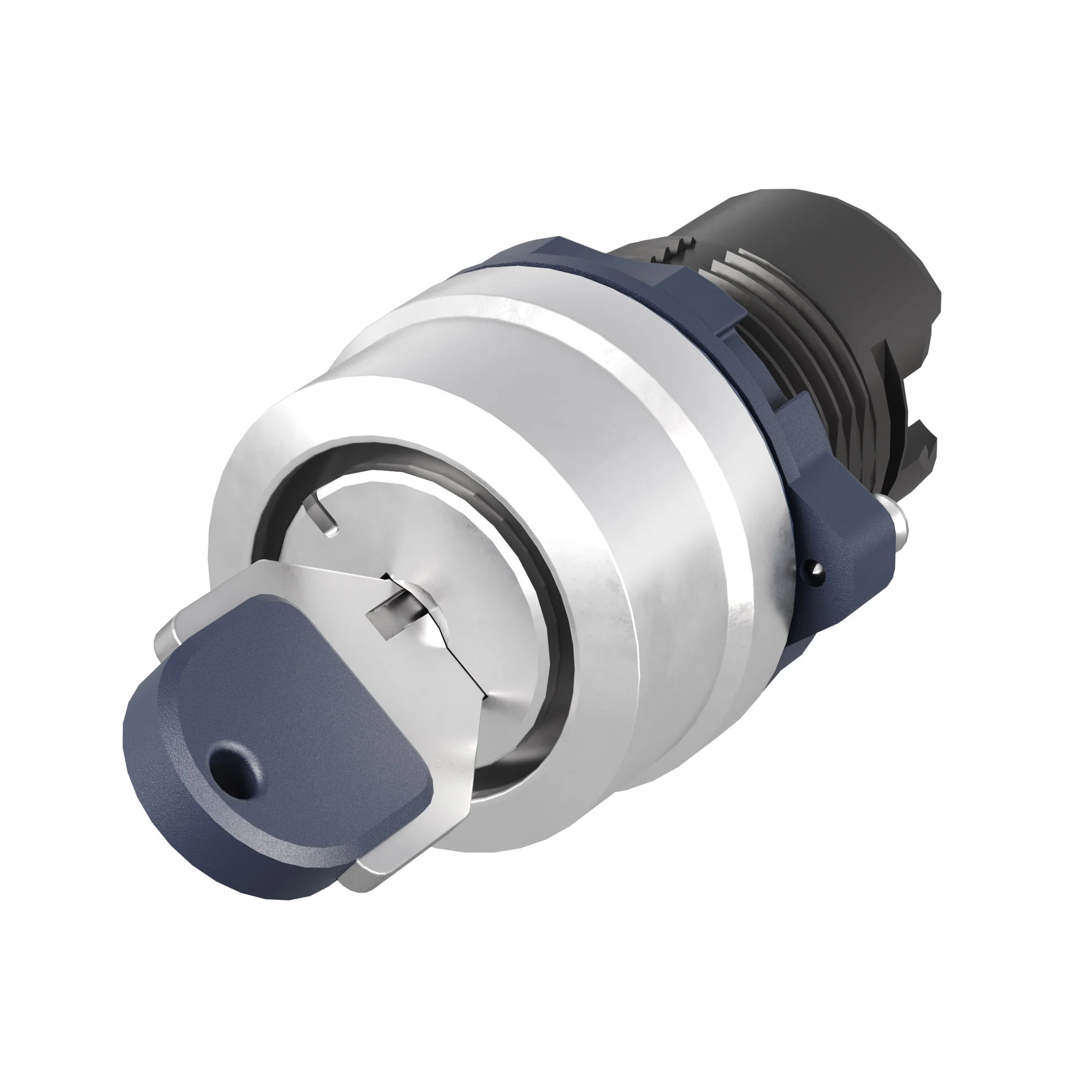 Головка переключателя с ключом на 3 положения с фиксацией выполнена в алюминиевом корпусе с стандартной ручкой, что гарантирует долговечность и удобство эксплуатации. Возможность фиксации каждой из трех позиций улучшает точность управления и снижает риск ошибок, обеспечивая надежность в процессе эксплуатации.