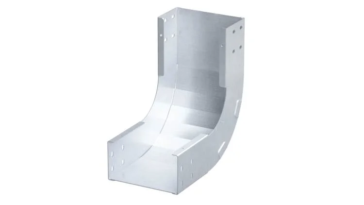 Вертикальный угол 90 градусов обеспечивает поворот трассы в вертикальной плоскости под прямым углом. Плавность поворота облегчает прокладку силового кабеля. Направление -внутренний. Ширина -900 мм, высота -150 мм. Исполнение — «Горячий цинк»
