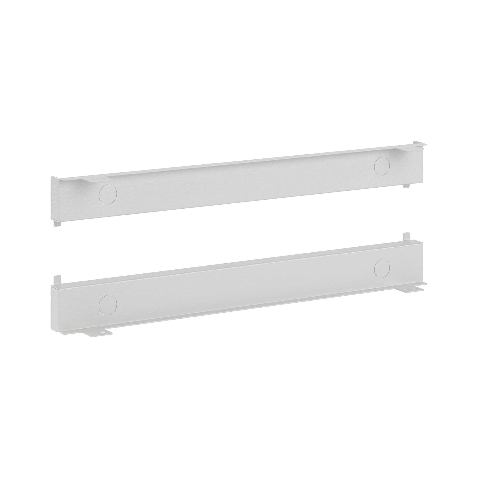 Комплект накладных панелей для установки на вертикальные стойки R5TE*M (1 комплект — 2 панели) шириной 1000 мм и высотой 50 мм каждая. Панели предназначены для организации закрытия верхней и нижней части фасада шкафов НКУ с установленными внутренними поворотными пластронами типа R5NPI*.