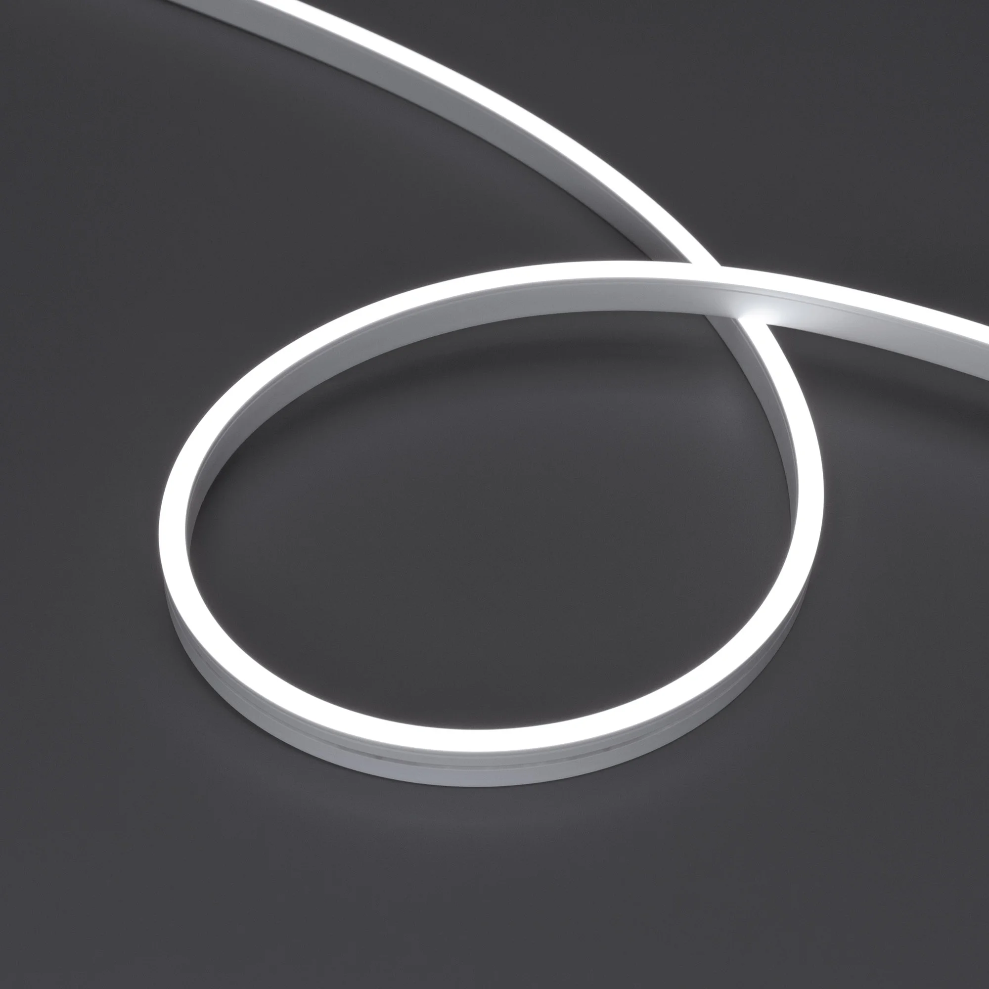 Гибкий неон AURORA в силиконовой оболочке. Светодиоды SMD2835, 120 шт-м, цвет БЕЛЫЙ 6000К. Сечение 16х8 мм, горизонтальный (боковой) изгиб, IP65, шаг резки 8.33 мм, мощность 10 Вт-м, напряжение питания DC 24V. Укомплектован заглушками и 30см проводом питания. Кратность заказа поставщику: 5 м.