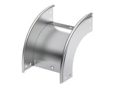 Угол вертикальный внешний 90° применяется для организации поворота трассы вниз на 90°. В состав комплектного аксессуара входят крепежные элементы, необходимые для качественного и надежного монтажа. Исполнение аксессуара – «сталь, оцинкованная по методу Сендзимира», ширина – 400 мм, высота – 35 мм, толщина стали – 0,8 мм.