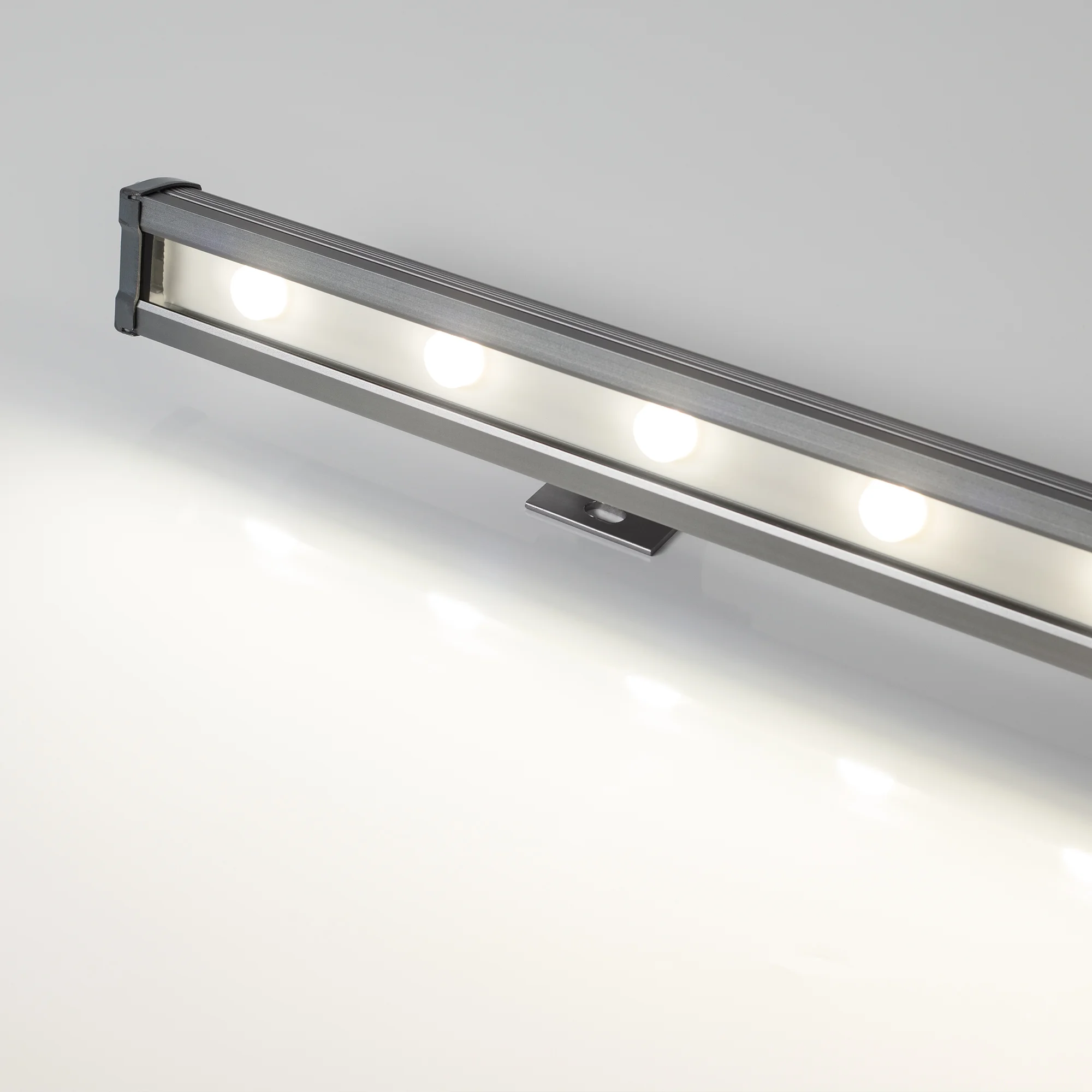 Ультратонкий линейный светодиодный прожектор. Мощность 12W, напряжение питания AC 230V. Светодиоды OSRAM 12 штуки. Цвет светодиодов тёплый белый 3000K, световой поток 80Lm/Watt, угол рассеивания 30°. Корпус: алюминиевый сплав и армированное стекло. Цвет корпуса серый, степень влагозащиты IP65. Габариты 500x40x30мм. Гарантия 3 года с даты продажи.