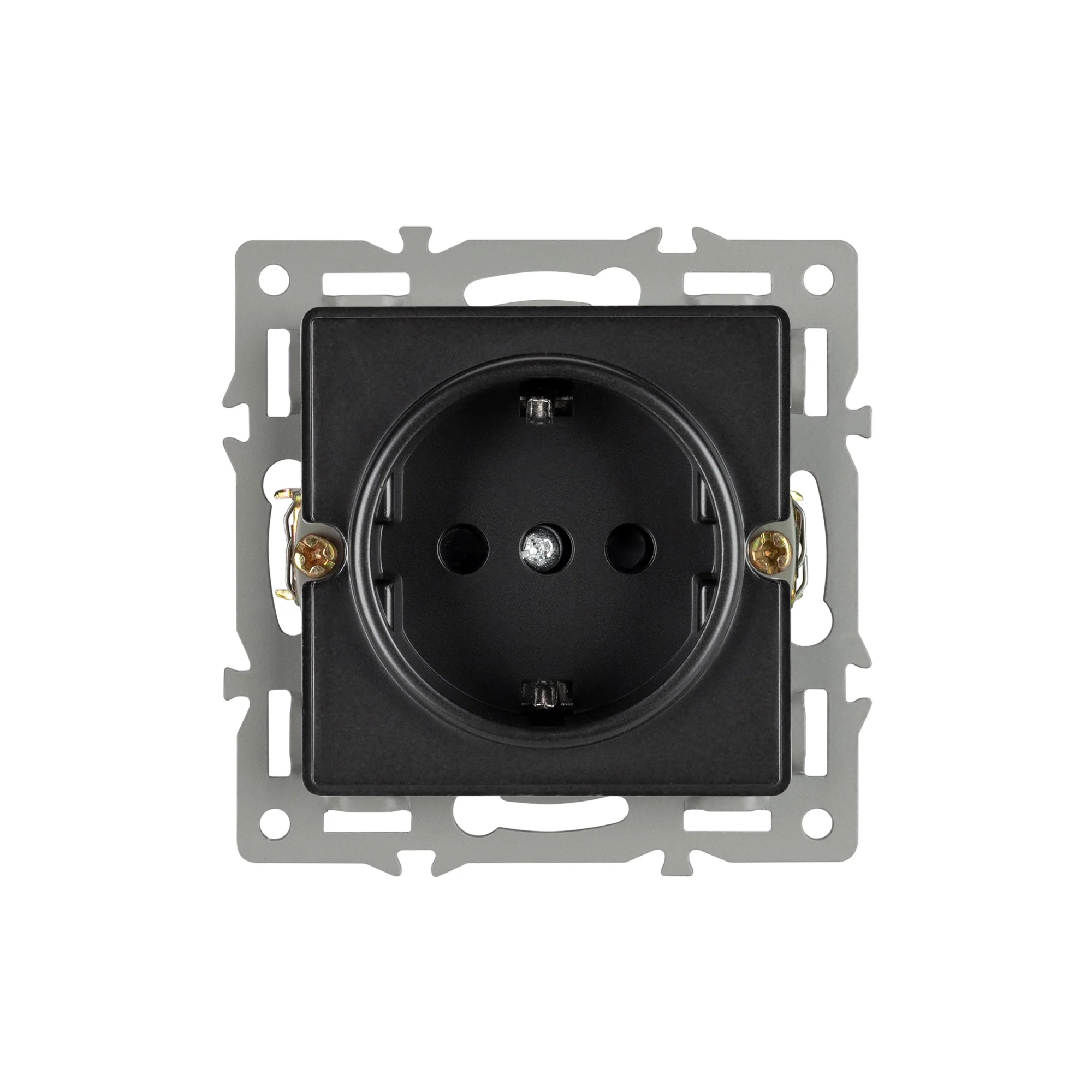 Механизм розетки с заземлением на 1 пост, с суппортом из алюминия. Цвет — черный. Степень пылевлагозащиты — IP20. Устанавливается в стандартный круглый подрозетник 220V (Арт.044895). Рабочее напряжение 110-250V. Макс. ток нагрузки 16А. Габаритные размеры: длина 74 мм, ширина 74 мм, высота 40 мм. Гарантийный срок 10 лет.