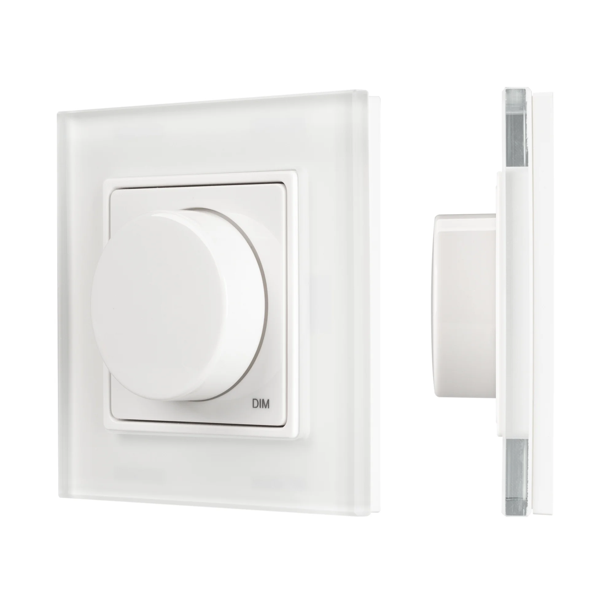 Накладная роторная панель 2.4 ГГц, цвет белый. Материал — стекло/пластик. Для управления одноцветными источниками света (ШИМ). Управление яркостью с помощью роторного вращателя. Питание/рабочее напряжение 3VDC от батарейки CR2032. Габариты 86х86х24 мм. Панель совместима с диммерами серии SMART.