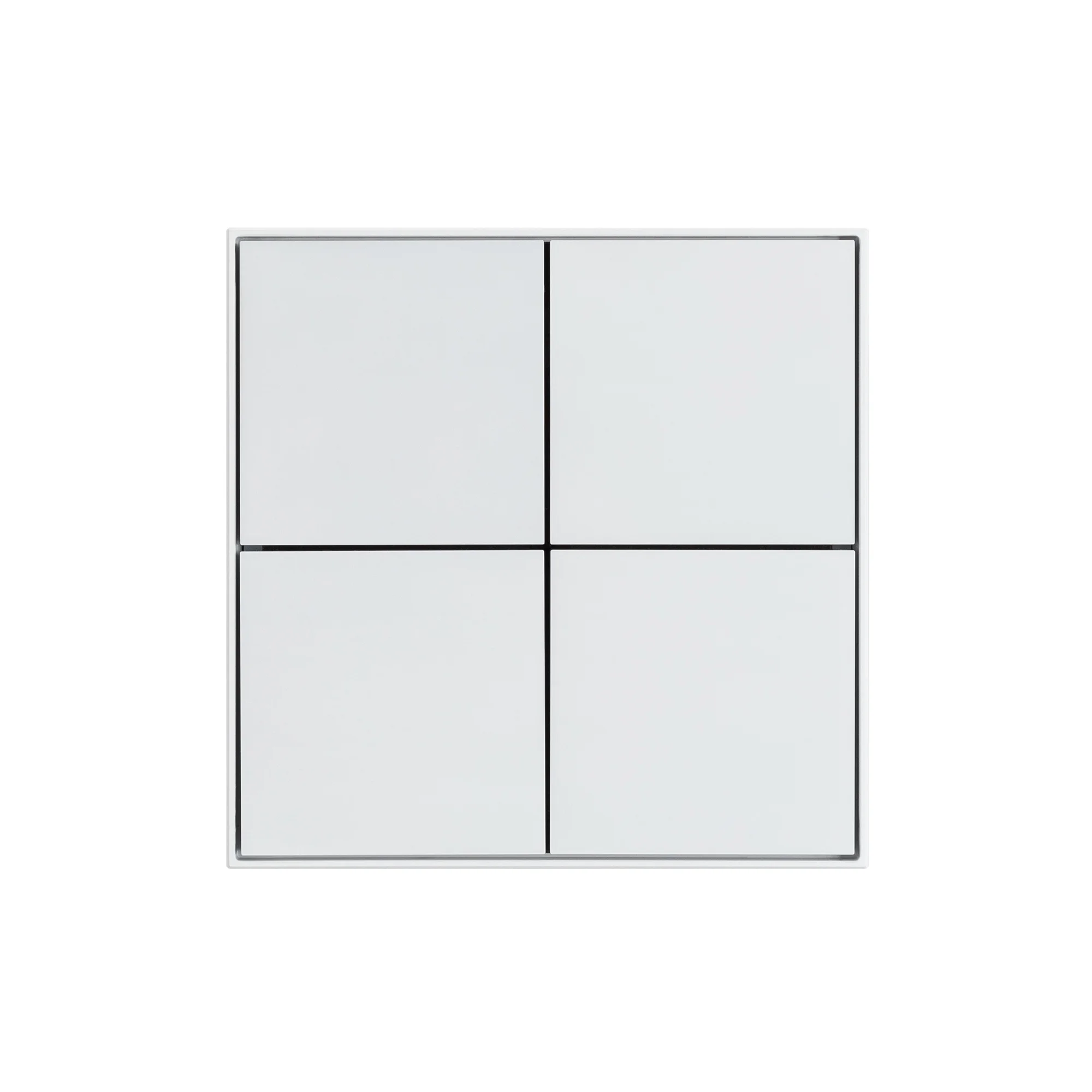 Универсальная многофункциональная встраиваемая настенная сенсорная панель для систем KNX. 4 сенсорные клавиши. Безрамочный корпус, материал — алюминий, светодиодная индикация. Цвет корпуса — белый матовый. Питание от шины KNX DC 21-30V. Габариты 86x86x33 мм.