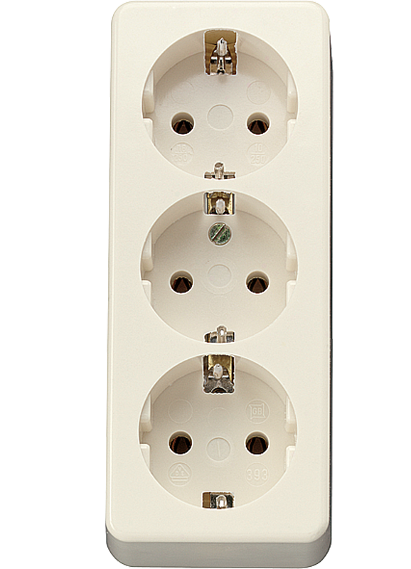 Розетка 16A 250V~ накладная, с основанием, тройная