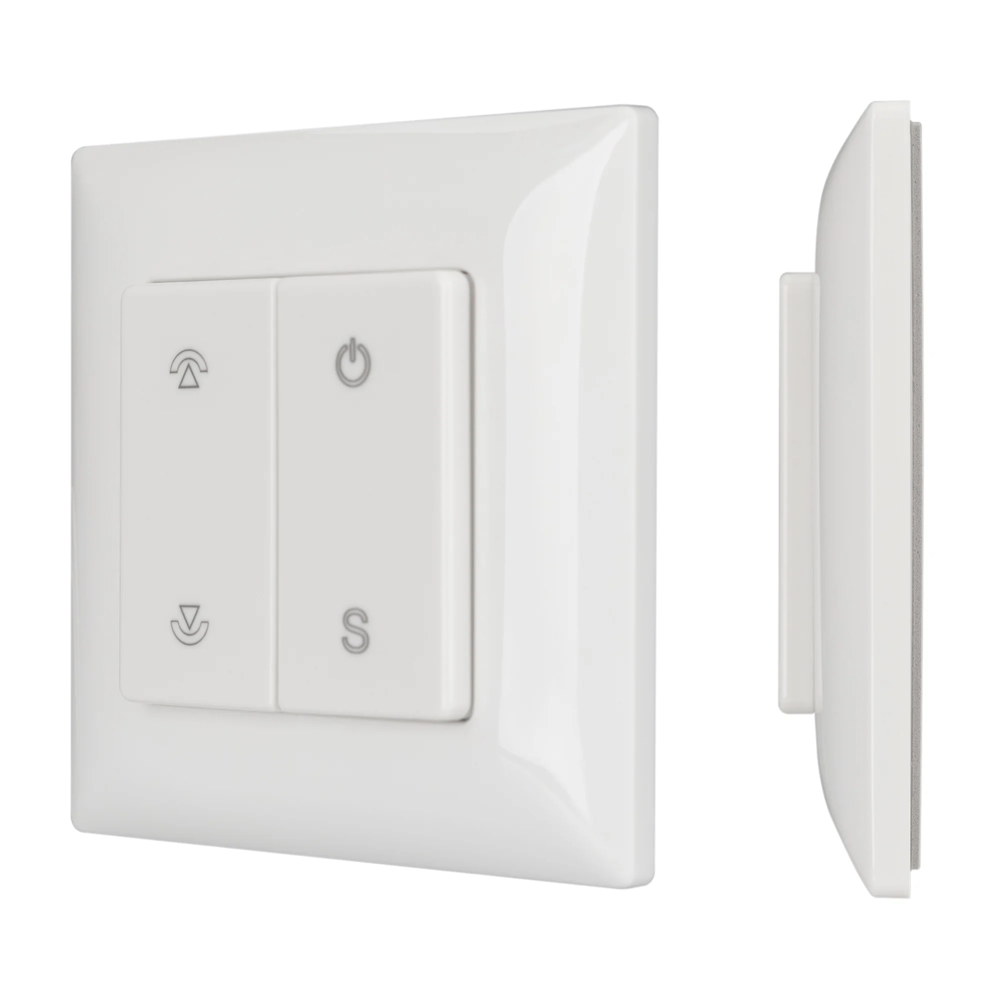 Накладная кнопочная панель 2.4 ГГц, цвет белый. Материал — пластик. Для управления одноцветными источниками света, 1 зона управления. Питание/рабочее напряжение 3VDC от батарейки CR2032. Габариты 86х86х14 мм. Совместима с диммерами SMART.