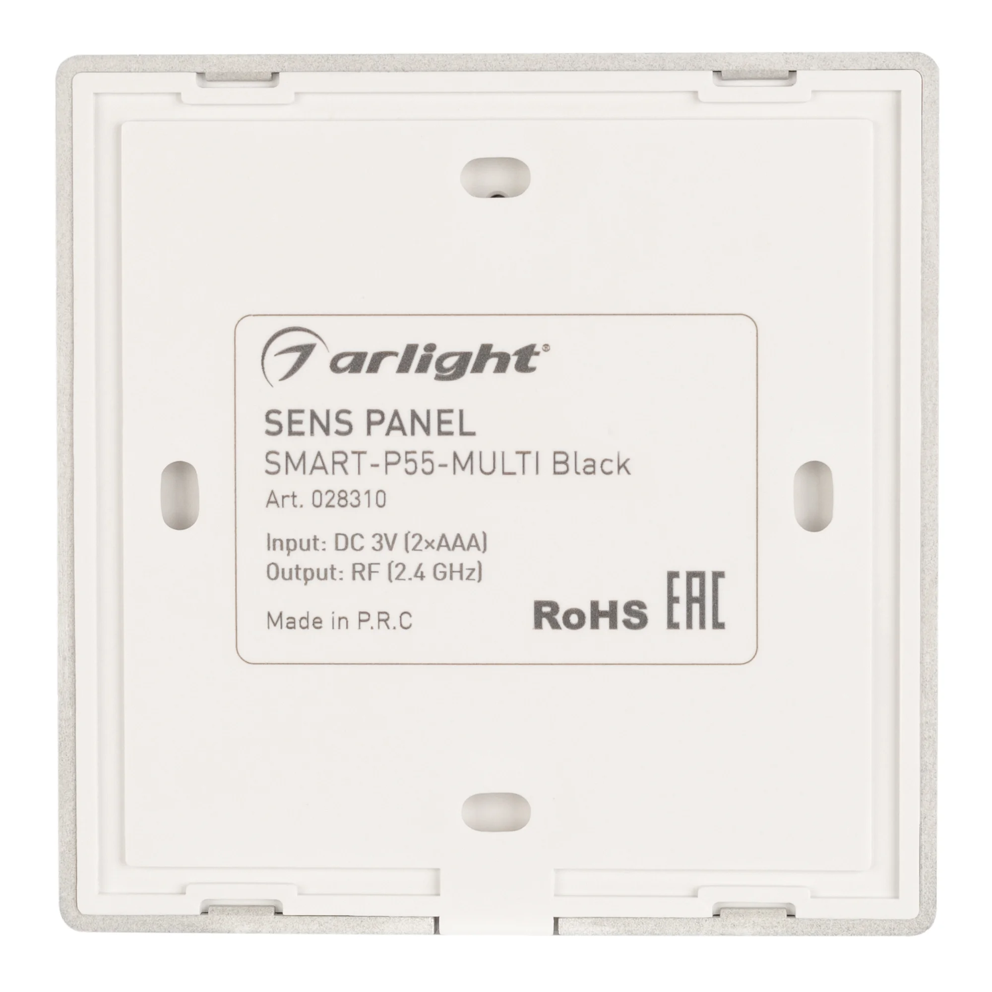 Накладная сенсорная панель 2.4 ГГц, цвет чёрный. Материал — стекло. Для управления RGB+MIX (5-канальными) источниками света (ШИМ), 4 зоны управления. Питание/рабочее напряжение 3VDC от 2xAAA. Габариты 86х86х21 мм. Панель совместима с контроллерами серии SMART.
