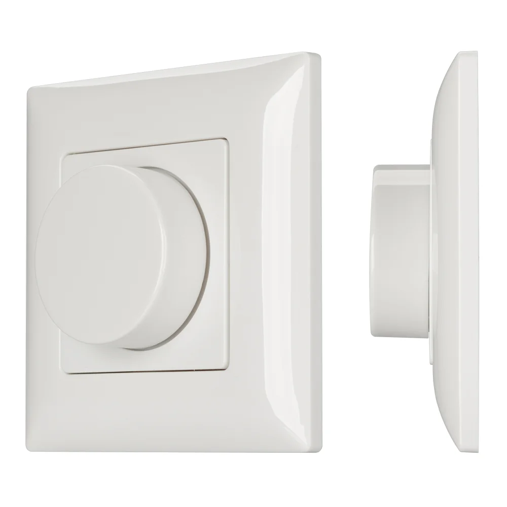 Накладная роторная панель 2.4 ГГц, цвет белый. Материал — пластик. Для управления одноцветными источниками света (ШИМ). Управление яркостью с помощью роторного вращателя. Питание/рабочее напряжение 3VDC от батарейки CR2032. Габариты 86х86х23 мм. Панель совместима с диммерами серии SMART.