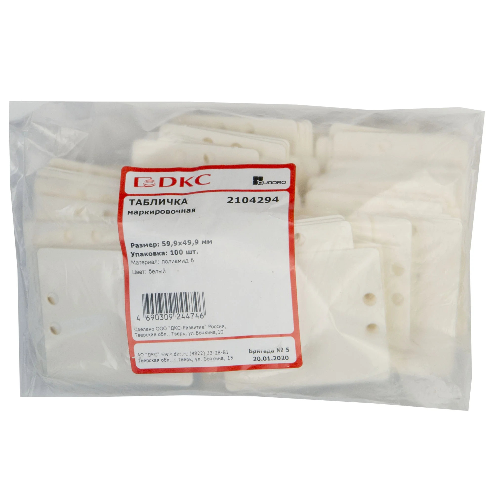 Кабельная бирка из полиамида 6.6 для идентификации кабельных линий согласно СП 76.13330.2016 и ПУЭ. Фиксируется на кабеле кабельными стяжками. Размер 59,9х49,9 мм. Белый цвет.