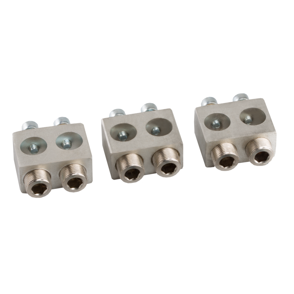 Перемычка стационарная винтовая, трехполюсная для быстрого и надежного перемыкания винтовых клемм 35 мм² KRU-35N. Возможен пропуск при соединении клемм за счет выкручивания винтов.