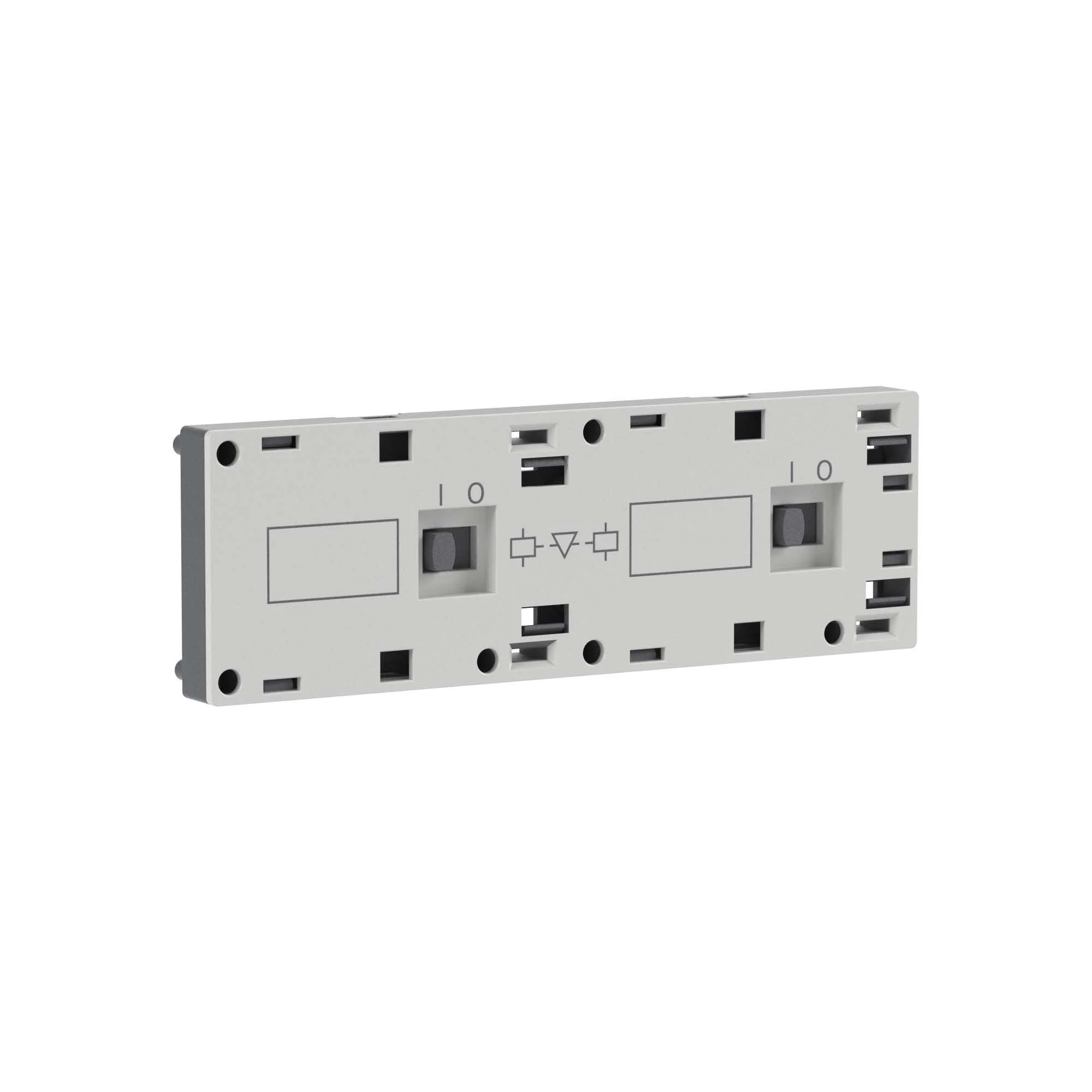 Фронтальная механическая блокировка DMCMI предназначена для реверсирования мини-контакторов. Блокировка предотвращает одновременное включение контакторов прямого и обратного хода. Модули вспомогательных контактов, ограничители перенапряжений и таймеры могут использоваться совместно с механической блокировкой.