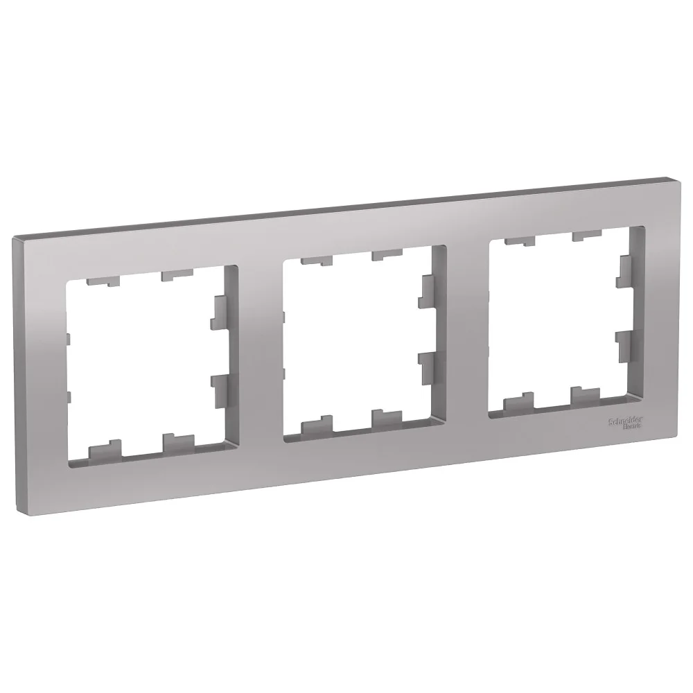Рамка Systeme Electric (ранее Schneider Electric) серии AtlasDesign в цвете алюминий трёхместная. — Устанавливается в вертикальном и горизонтальном положениях. — Лицевые детали из качественного ABS-пластика, устойчивого к царапинам и УФ-излучению. — Позволяет гармонично вписать электроустановочное изделие в интерьер помещения.