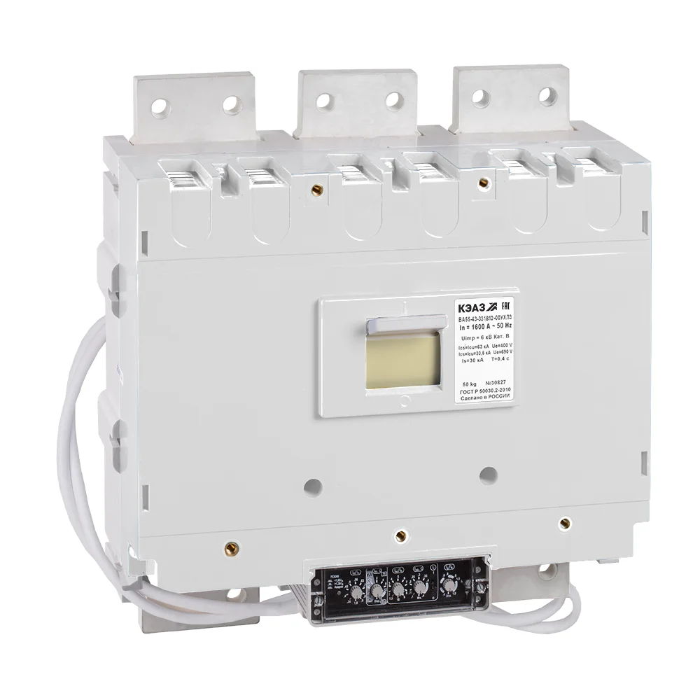 Блочный автоматический 3 полюсный выключатель переменного тока с предельной коммутационной способностью при переменном токе 63 кА на номинальный ток 1600 А .
