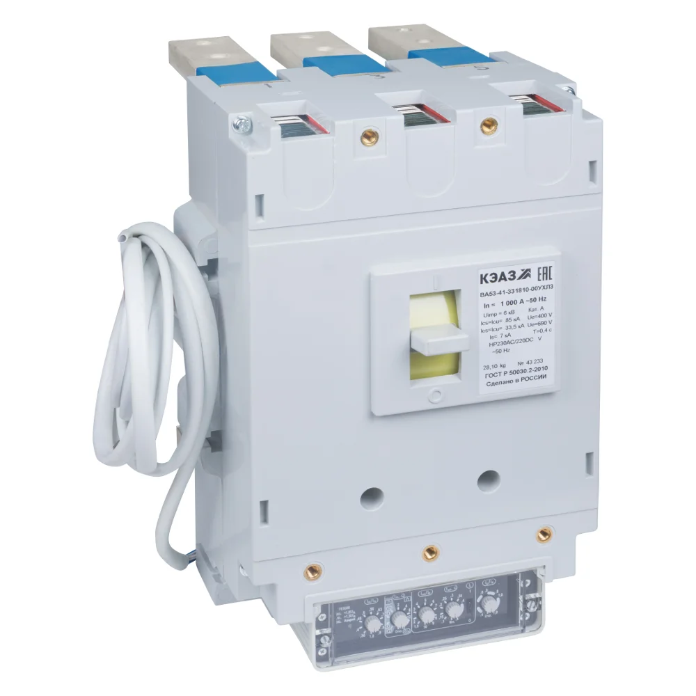 Блочный автоматический 3 полюсный выключатель переменного тока с предельной коммутационной способностью при переменном токе 85 кА на номинальный ток 1000 А .