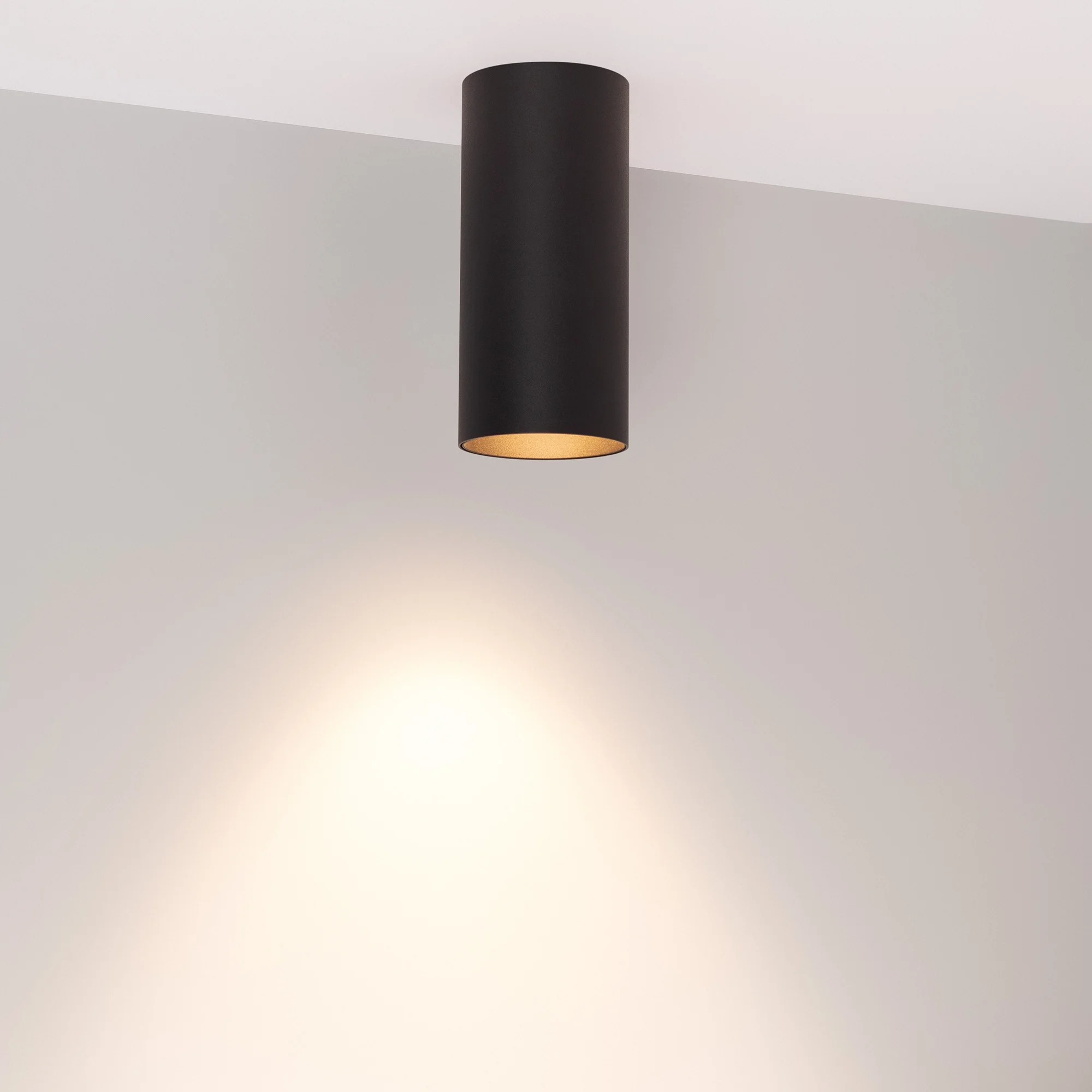 Накладной светильник. Мощность 12 Вт, св. поток 1100 лм, 92 лм/Вт, теплый 3000 K, CRI>90, угол 60°, напряжение питания 230 В. Чёрный круглый корпус из алюминия, экран PMMA, степень защиты IP40. Размер: диаметр 60 мм, высота 130 мм. Монтаж накладной. Встроенный драйвер 27-42 В, 300 мA, пульсация <1%.