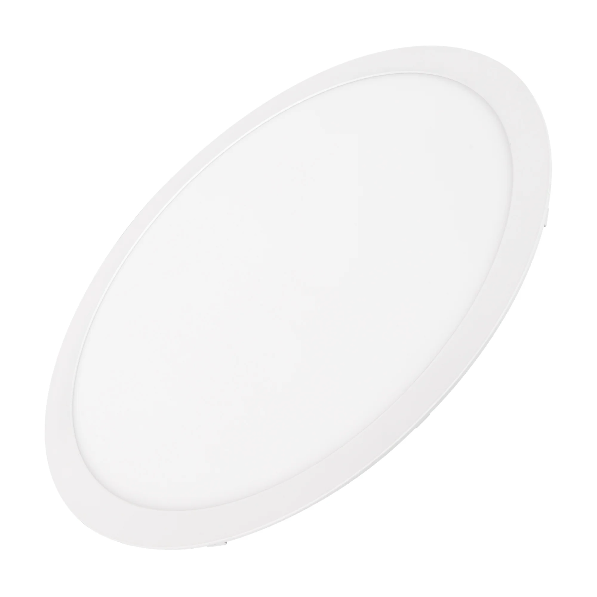 Встраиваемая круглая тонкая панель. Мощность 34 Вт, св. поток 2720 лм, 80 лм/Вт, дневной 4000 K, CRI>80, угол 115°, напряжение питания 230 В. Белый круглый корпус из алюминия, экран PMMA+PS, степень защиты IP40. Размер: диаметр 400 мм, высота 15 мм. Монтаж встраиваемый, установочное отверстие: диаметр 386 мм. Драйвер 33-40 В, 900 мА, пульсация <1%.