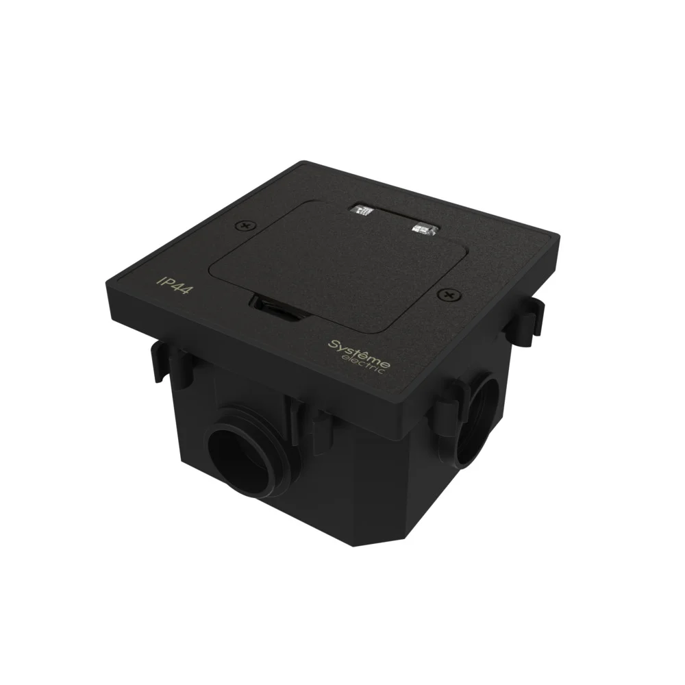 Systeme Elecrtic MultiDesk Чёрный матовый Лючок на 2 модуля IP44 с монтажной коробкой для бетонных полов , тип MDK20
