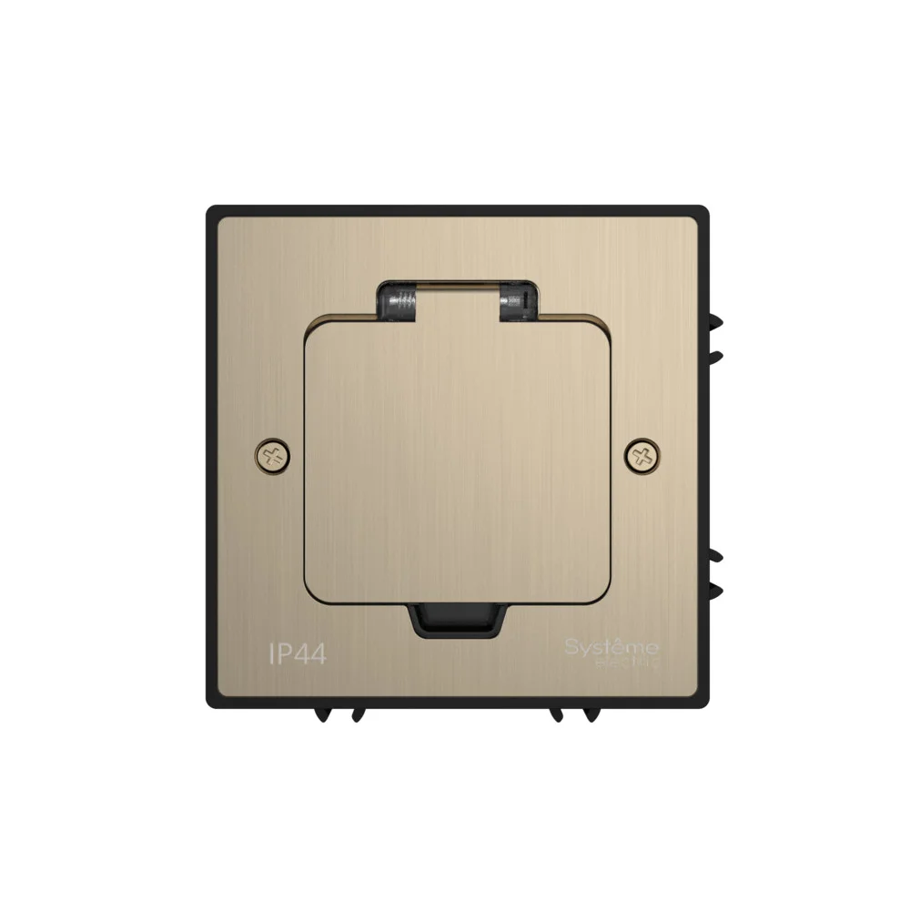 Systeme Elecrtic MultiDesk Медь Лючок с розеткой 2К+З, 16А/250В, IP44 с монтажной коробкой для стены, фальшпола, стола , тип MDK21