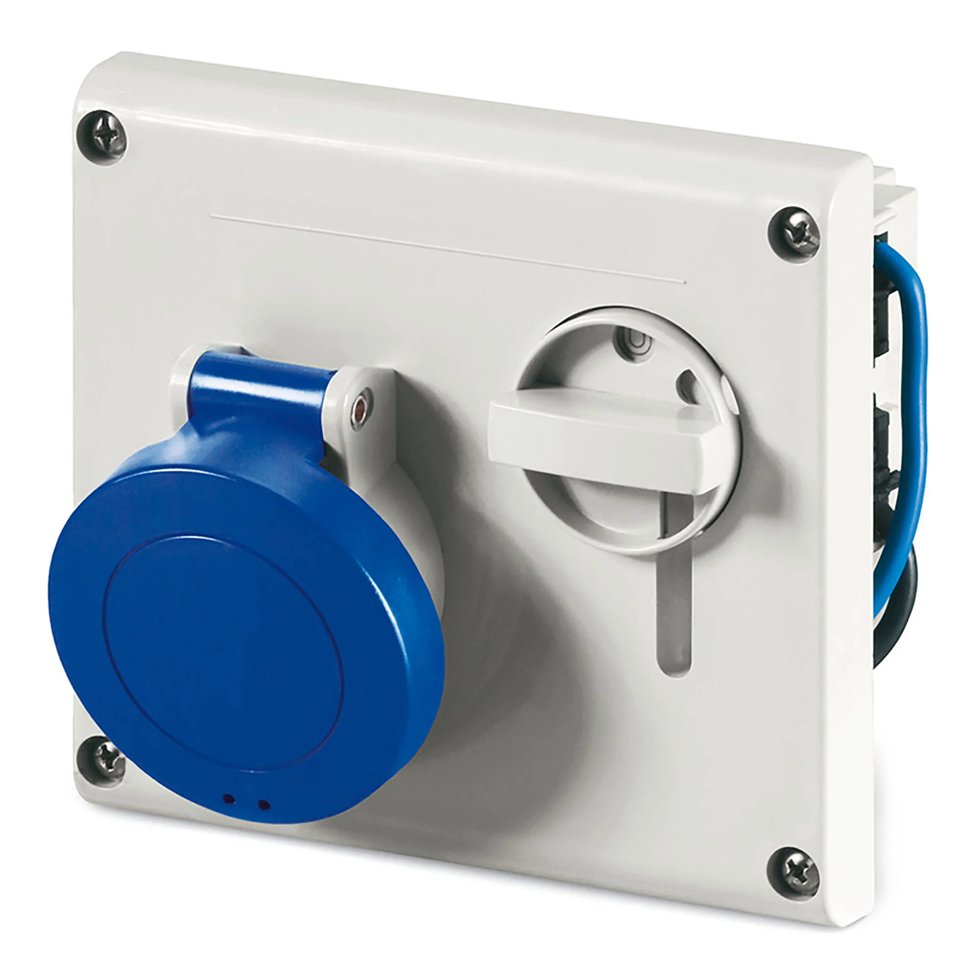Применяется для организации точки подключения с установленным модульным оборудованием и механической блокировкой подачи питания/извлечения вилки. Рассчитана на рабочее напряжение номиналом 230 В. Тип 2P+E. Ток 16 A. Тип соединения — винтовой зажим. Степень защиты — IP44.
