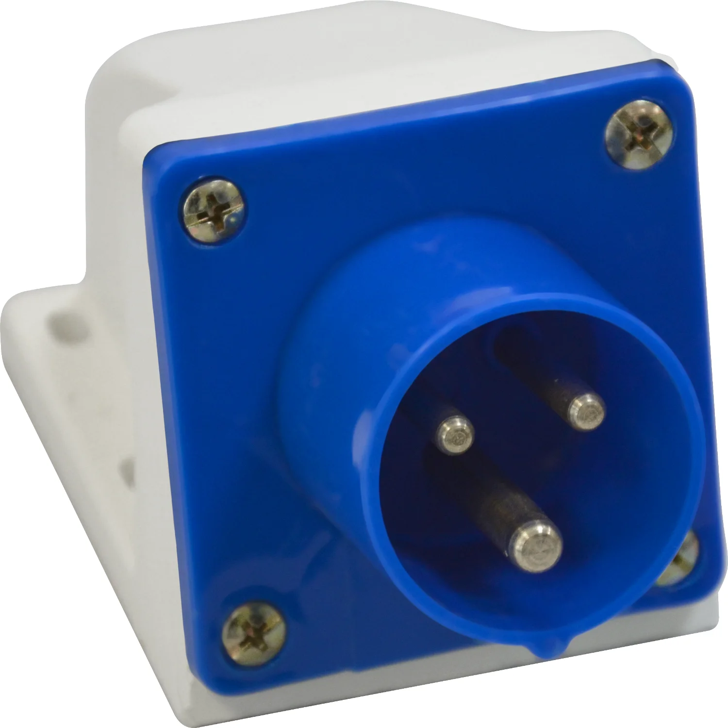 Силовая вилка 3 полюсная на номинальный ток 32 А и рабочее напряжение переменного тока 220 В.