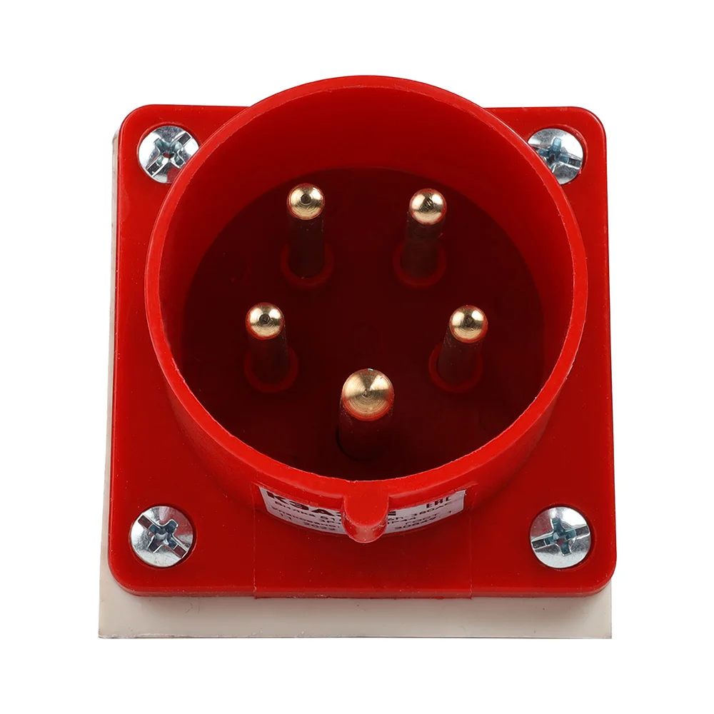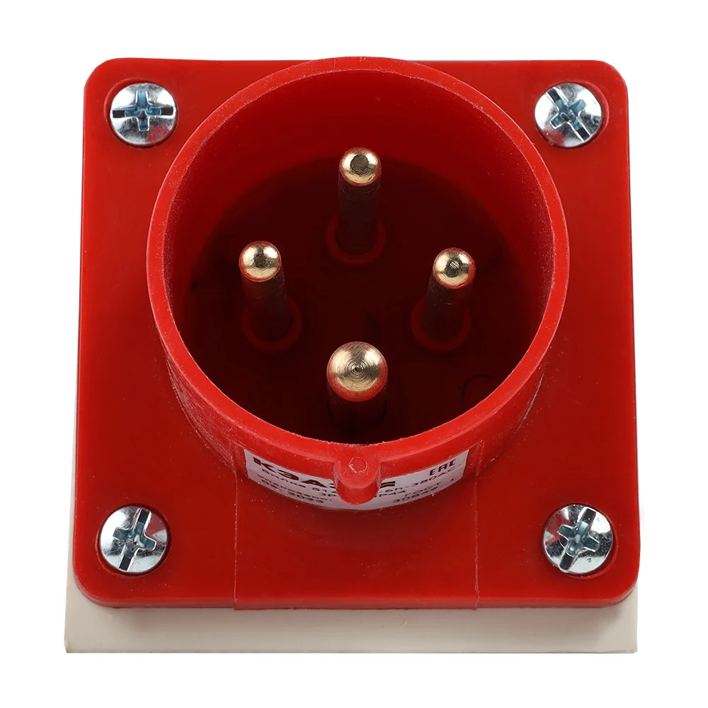 Силовая розетка 4 полюсная на номинальный ток 32 А и номинальное рабочее напряжение переменного тока 380 В.