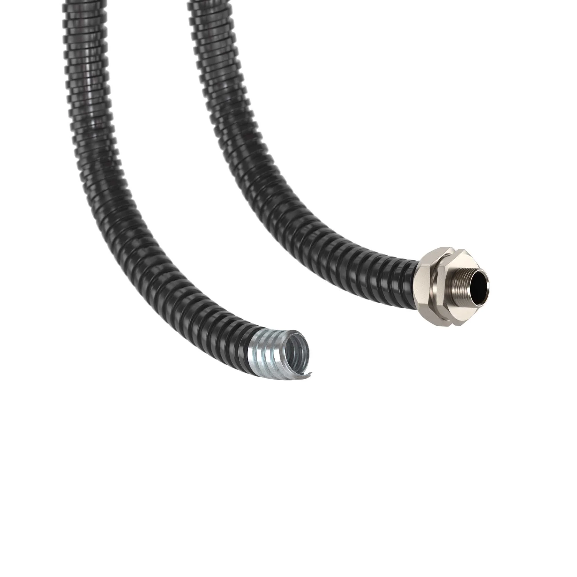 Гибкие металлические трубы могут прокладываться под удобным углом, что повышает адаптивность системы под различные задачи и облегчает монтаж. Отличительные особенности металлорукавов — гибкость и высокая прочность. Металлорукав в ПВХ-изоляции имеет высокую степень герметизации — IP 66/67 и промаркирован через каждый метр для удобства монтажа. Внутренний диаметр — 26,5 мм. Цвет — черный.