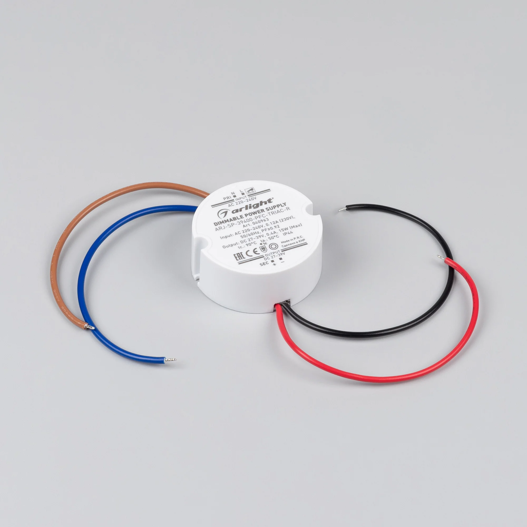 Диммируемый источник тока по стандарту TRIAC с гальванической развязкой для светильников и мощных светодиодов. Входное напряжение 220-240 VAC. Выходные параметры: 27-40 В, 200 mА, 7 Вт. Встроенный PFC >0,92. Пластиковый корпус IP 44. Габаритные размеры: диаметр в окружности Ø42 мм, высота 20 мм. Гарантийный срок 5 лет.