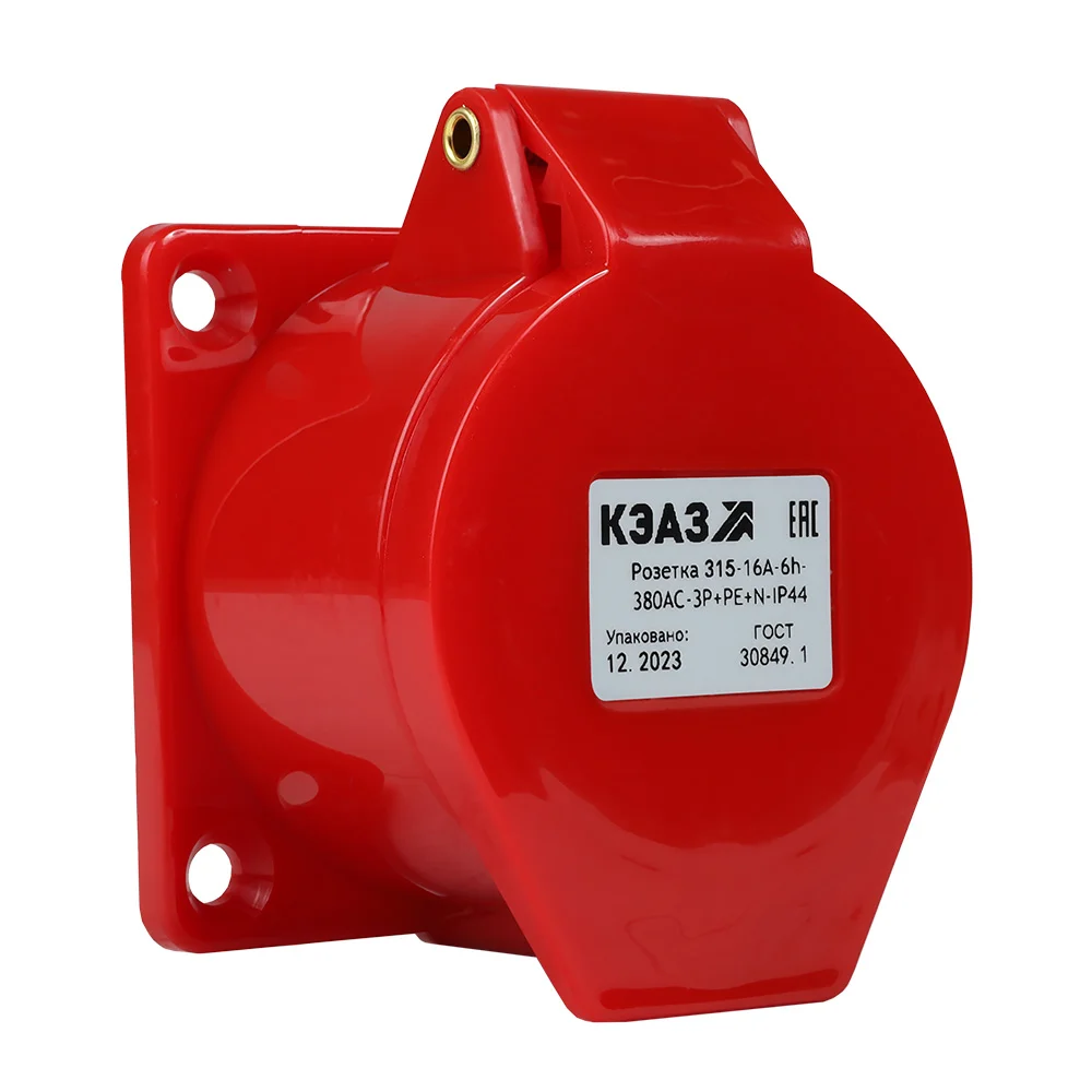 Силовая розетка 5 полюсная на номинальный ток 16 А и номинальное рабочее напряжение переменного тока 380 В.
