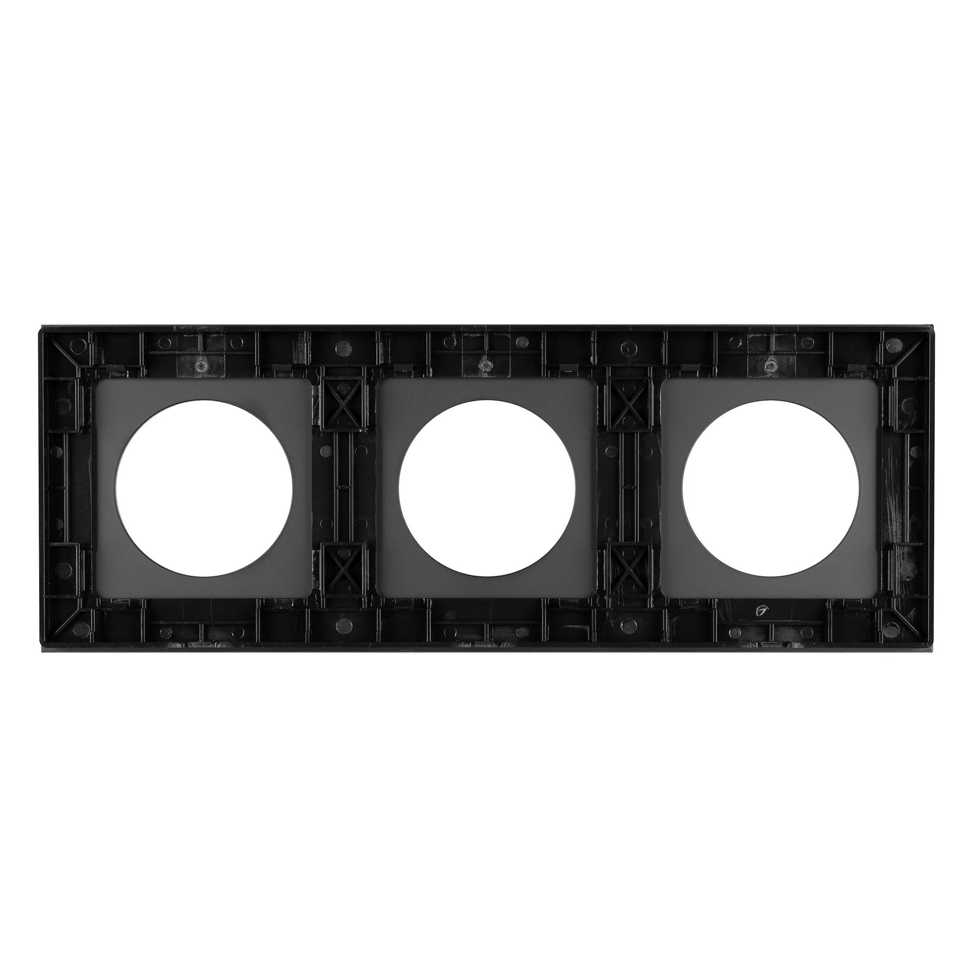 Рамка стеклянная на 3 поста, под встраиваемый механизм. Вырез под функциональную часть круг. Цвет — черный. Ориентации монтажа — горизонтальная. Габаритные размеры: длина 224 мм, ширина 82 мм, высота 10 мм. Гарантийный срок 12 мес. Рамка совместима только с механизмами арт. 043740/043739/043741