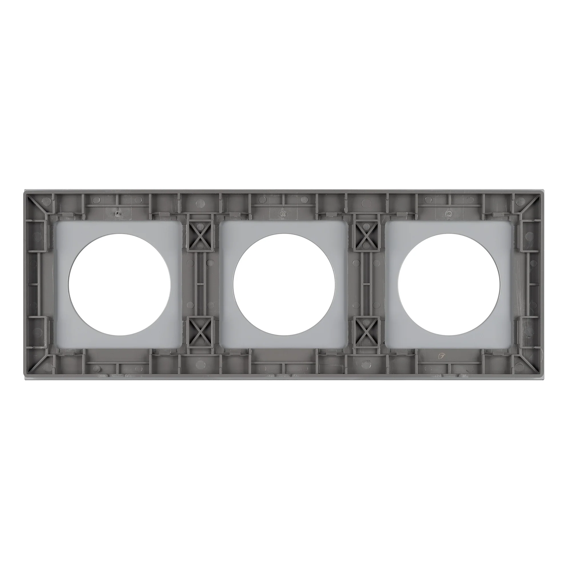 Рамка стеклянная на 3 поста, под встраиваемый механизм. Вырез под функциональную часть круг. Цвет — серый. Ориентации монтажа — горизонтальная. Габаритные размеры: длина 224 мм, ширина 82 мм, высота 10 мм. Гарантийный срок 12 мес. Рамка совместима только с механизмами арт. 043741/043739/043740