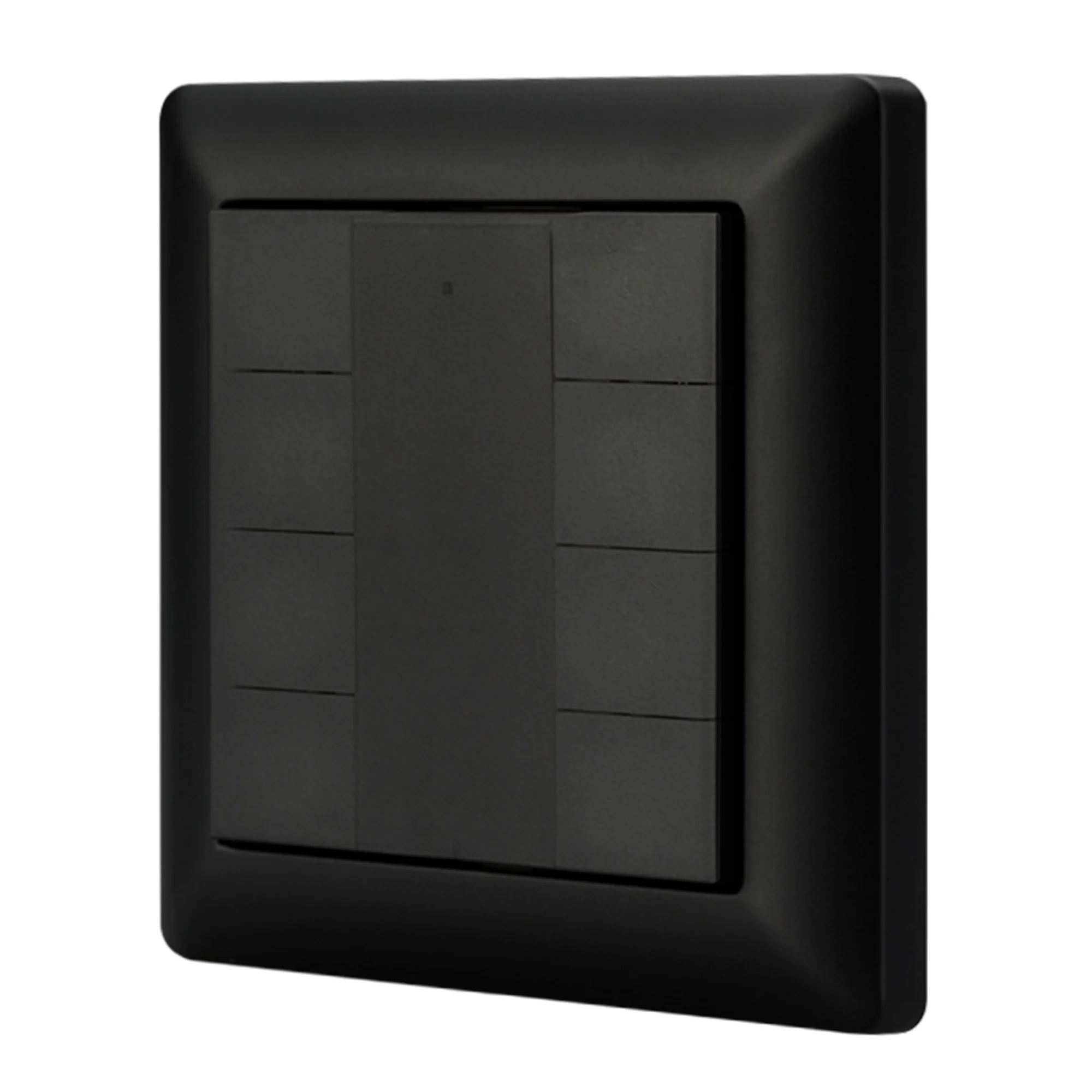 Встраиваемая кнопочная черная пластиковая панель для работы по протоколу DALI-2. 8 кнопок свободного функционала. Назначение кнопок задается в мастер-контроллере серии DALI-LOGIC-x. Питание от шины DALI (4 мА). Стандартная рамка входит в комплект поставки.