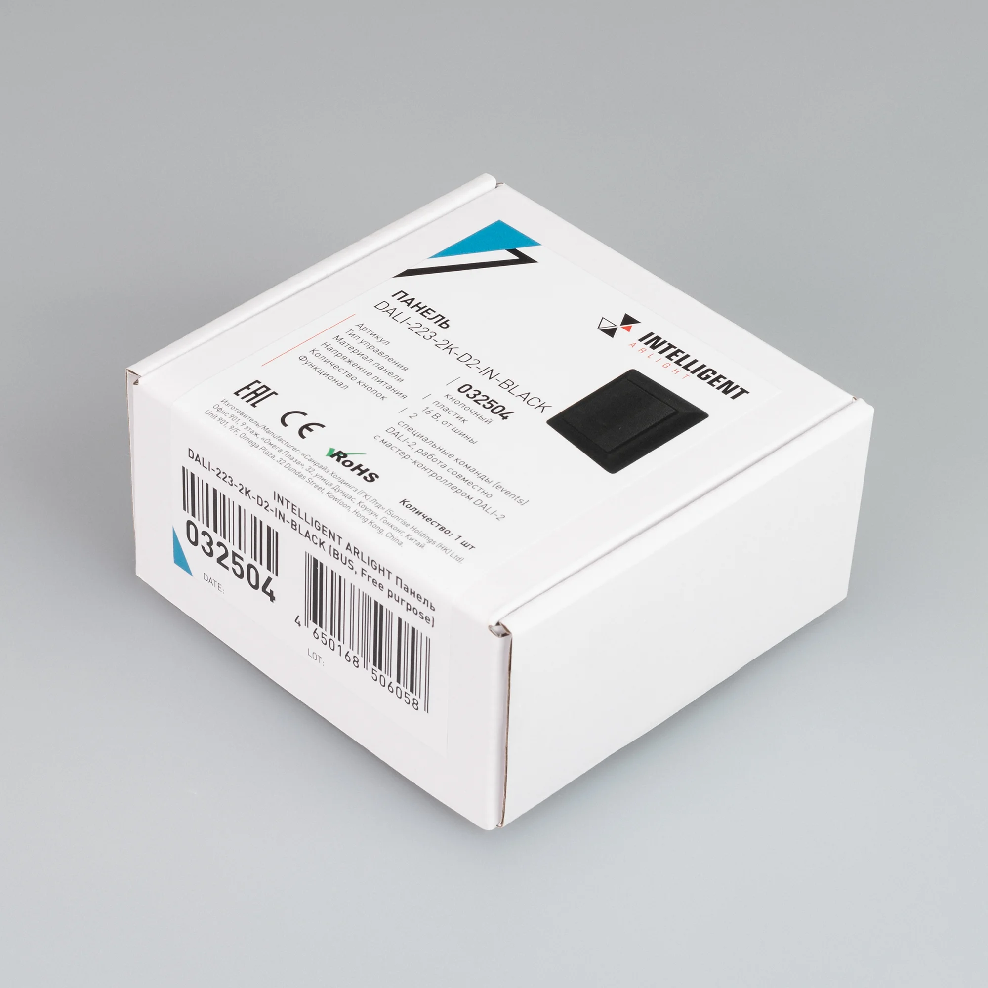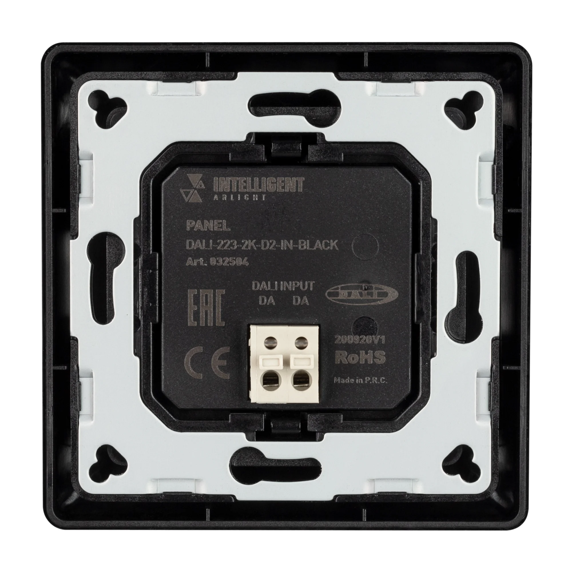 Встраиваемая кнопочная черная пластиковая панель для работы по протоколу DALI-2. 2 кнопки свободного функционала. Назначение кнопок задается в мастер-контроллере серии DALI-LOGIC-x. Питание от шины DALI (4 мА). Стандартная рамка входит в комплект поставки.